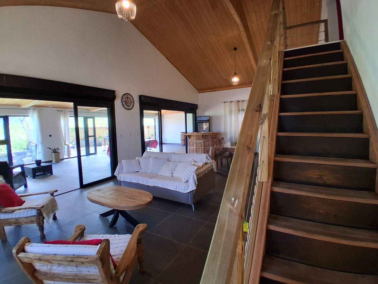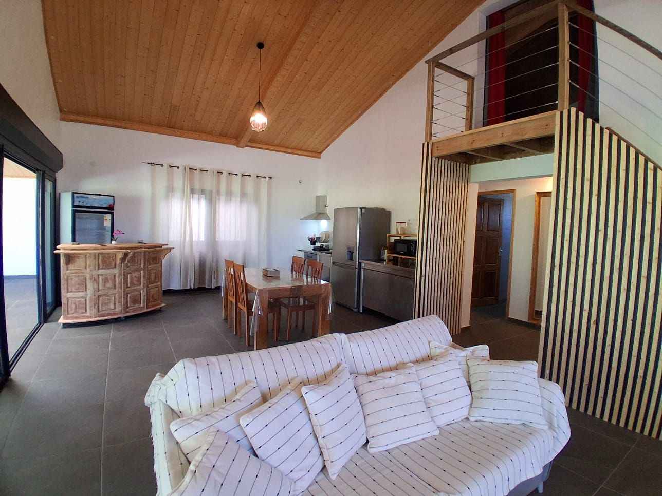 entre amis. Dès votre arrivée, vous serez séduits par la vue imprenable sur les remparts, depuis la grande terrasse parfaitement exposée. L’environnement calme et les vastes espaces extérieurs, aménagés avec soin pour votre bien-être, participent à faire de ce lieu un véritable havre de paix. À l’intérieur, vous profiterez d’une vaste pièce de vie de 70 m², pensée pour les moments de partage : salle à manger, coin détente, ou même petite réception selon vos envies. La cuisine ouverte est entièrement équipée et s’ouvre sur un séjour chaleureux avec canapés, fauteuils et TV connectée. Le rez-de-chaussée, accessible aux personnes à mobilité réduite (PMR), comprend : - Deux chambres doubles (lit 140x190) - Une salle d’eau avec WC adaptée PMR - Un WC indépendant À l’étage, la mezzanine abrite un coin cocooning propice à la lecture ou à la détente, ainsi qu’une chambre familiale composée d’un lit double (160x200) et de deux lits simples disposés de part et d’autre, idéale pour les enfants. A l'extérieur Kiosque pour grillades et cuisine au feu de bois pour vous faire plaisir ou pour vos évènements festifs. La Villa Rosat, c’est la promesse d’un séjour confortable, dans un environnement privilégié, au cœur d’un des plus beaux sites naturels de l’île. La maison se compose d'un grand séjour pouvant accueillir de petits évènements sur demande avec option traiteur ou pas. La cuisine est ouverte sur le séjour avec un espace repas et salon. Deux chambres doubles sont séparées par la salle d'eau et WC et d'un WC indépendant. A l'étage en mezzanine, une chambre familiale avec un lit en 160x200 et deux lits simples. Le logement est accessible par une rampe. Les sanitaires possèdent les équipements attendus pour les PMR. Une des chambres offre la surface de dégagements nécessaire pour le retournement d'un fauteuil ou le passage d'un déambulateur. Ouvert toute l'année