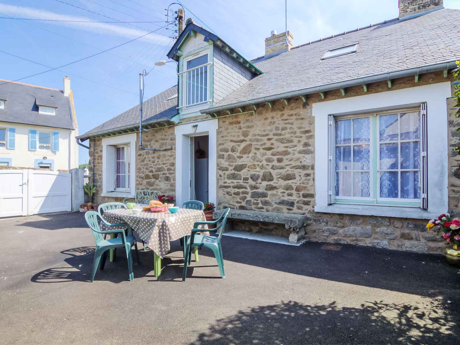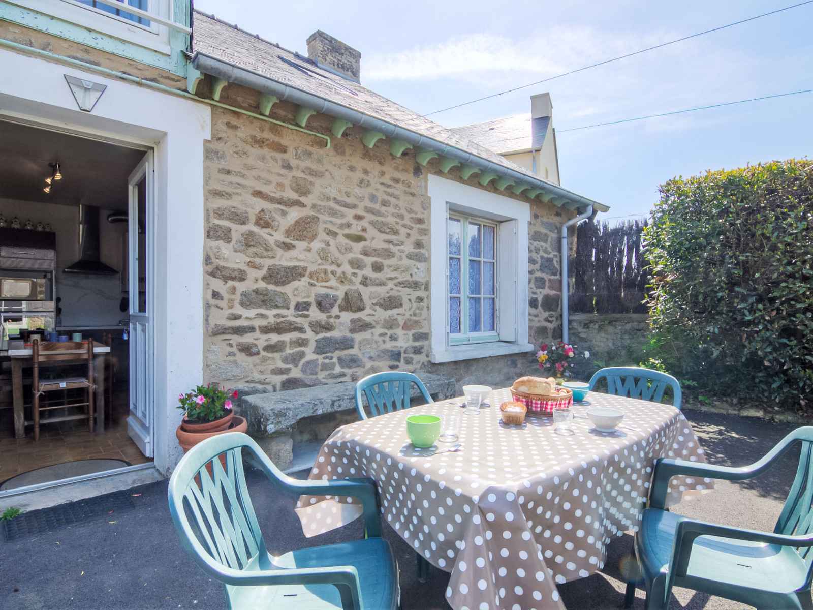 Maison individuelle "saint ideuc", de 2 étages. dans le quartier de saint ideuc en paramé, situation tranquille, à 1.5 km de la mer, à 1.5 km de la plage. a usage privé: jardin (clôturé), cour. meubles de jardin, barbecue, place de parking près de la maison. magasins 450 m, supermarché 1 km, restaurant 500 m, boulangerie 350 m, arrêt de