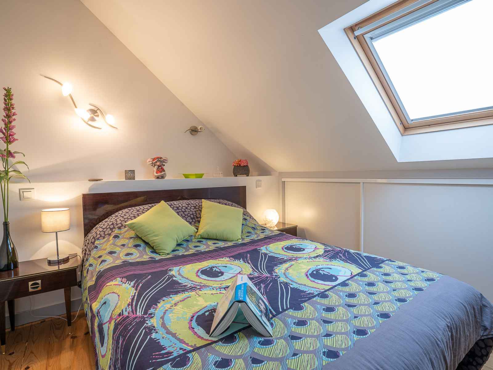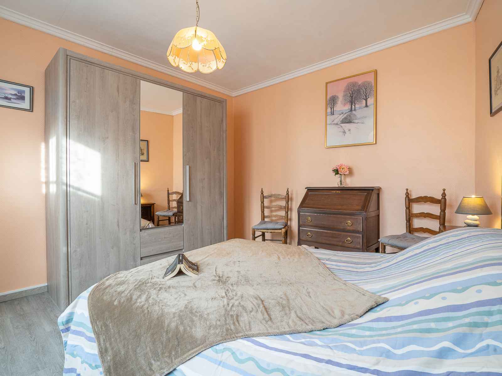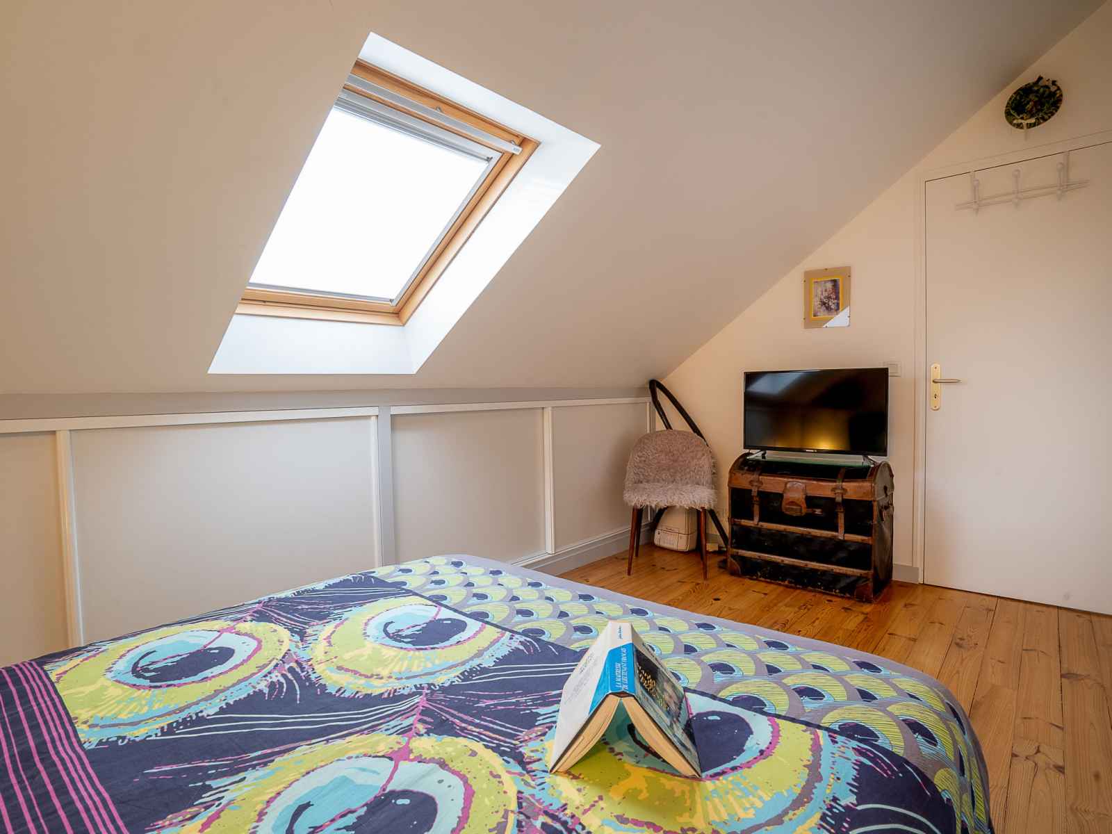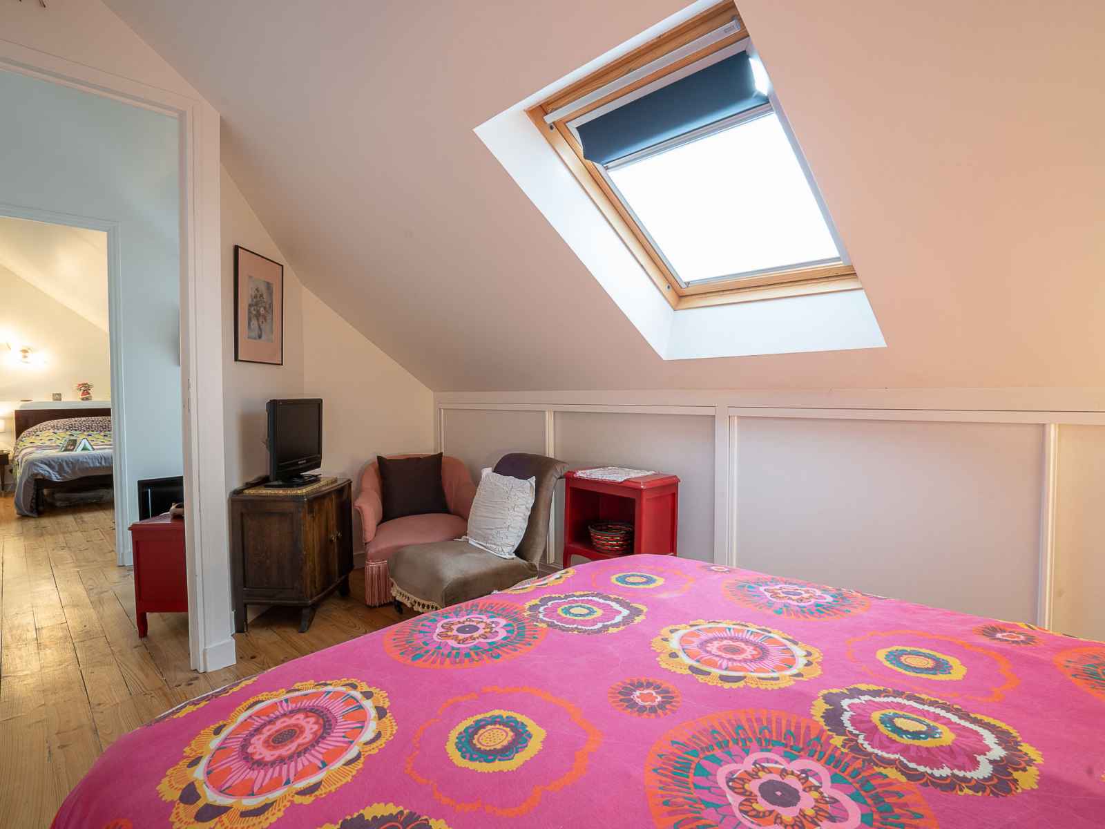 Maison 5 pièces 100 m2 sur 2 niveaux. partiellement rénovée, aménagement fonctionnel et rustique: séjour/salle à manger avec bibliotheque et tv. sortie sur le jardin. 2 chambres, chaque chambre avec: 1 grand-lit (1 x 140 cm, longueur 190 cm). grande cuisine (four, lave-vaisselle, 3 plaques vitrocéramiques, micro-ondes, cafetière