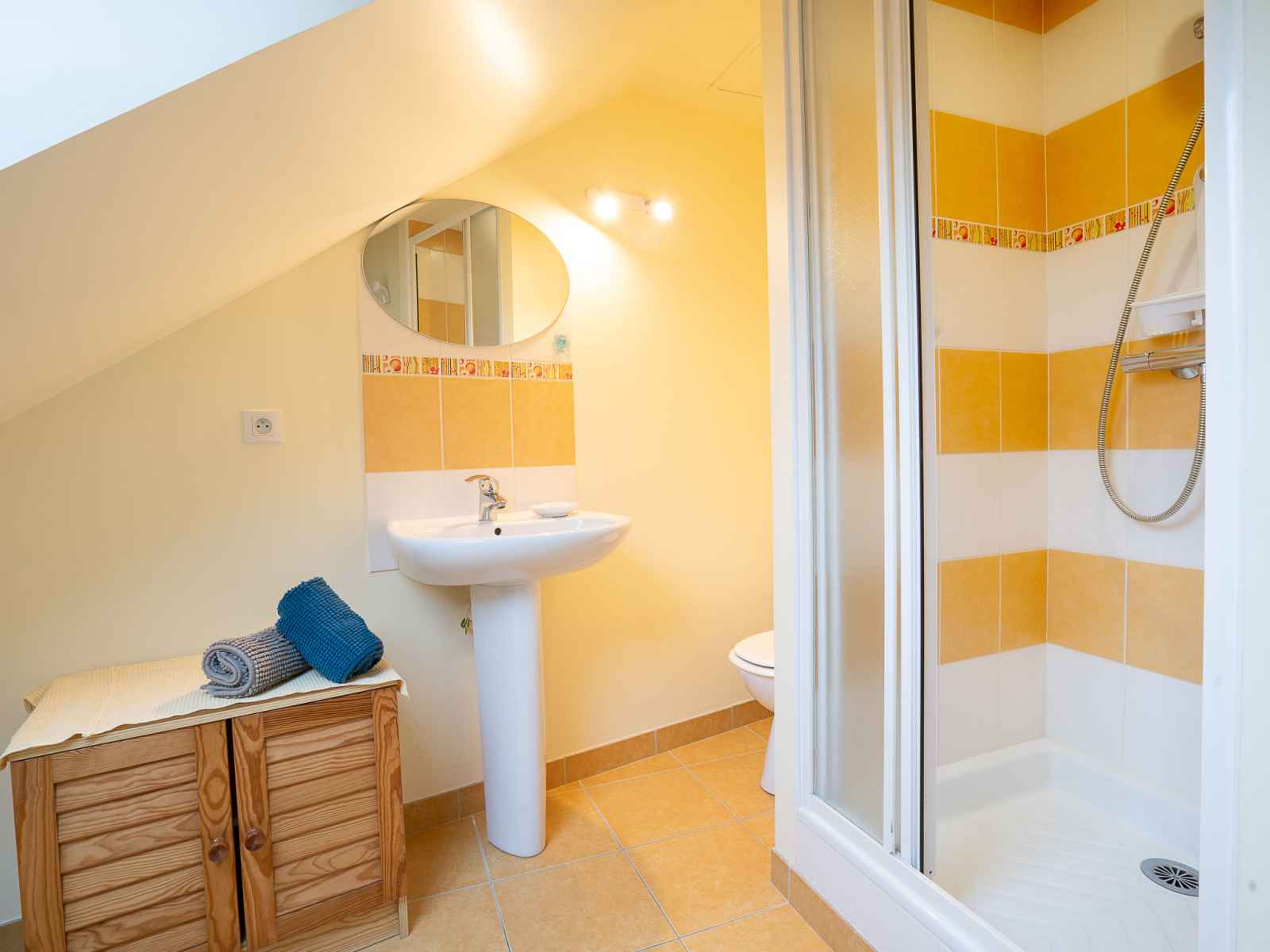 électrique). Douche/WC. Chauffage au gaz. Possibilité de chauffage uniquement du 15.10. au 30.04. À l'étage supérieur: 1 chambre, mansardée avec 1 grand-lit (1 x 140 cm, longueur 190 cm). 1 chambre, mansardée avec 1 grand-lit (1 x 140 cm, longueur 190 cm), TV. Douche/WC. A disposition: lave-linge, fer à repasser. Internet (Connexion WIFI, en sus). Veuillez noter: maison non-fumeur. Détecteur de fumée. 35288000514E1