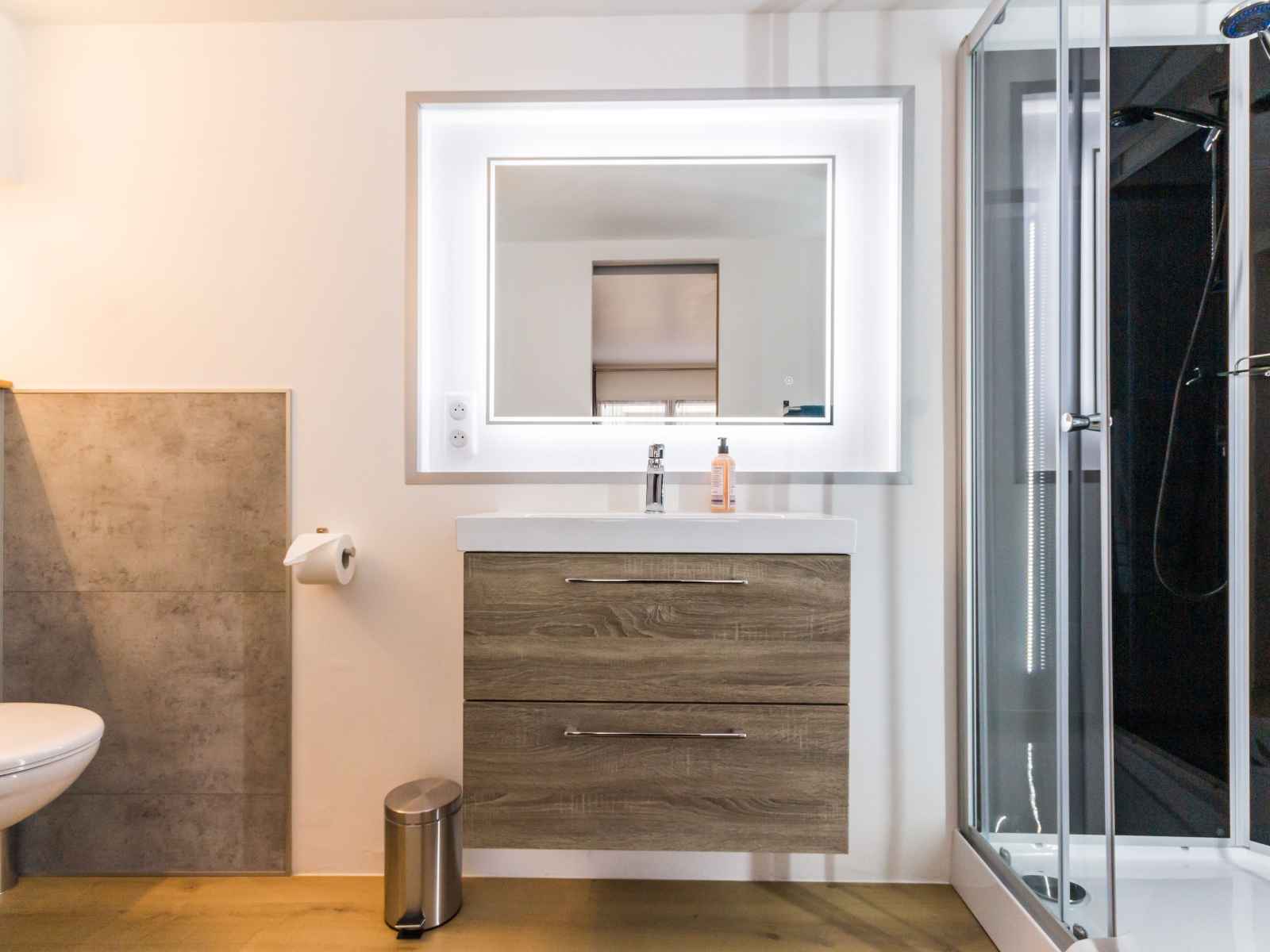 salon/séjour avec cuisine aménagée ouverte, 3 chambres accessibles par 1 marche, chacune avec salle d'eau/WC privatifs (1: 2 lits 80x200, 2 et 3: lit 160x200) . Equipements supplémentaires: wifi, TV par chambre, climatisation, sèche-linge, lave-linge, congélateur, lave-vaisselle, chaise/lit bébé. Compris: chauffage aérothermie (air/air), électricité, draps (lits faits à l'arrivée) et linge de toilette. Non-compris: taxe de séjour. Forfait ménage obligatoire (65€) pour la clientèle professionnelle. Gîte non fumeur.