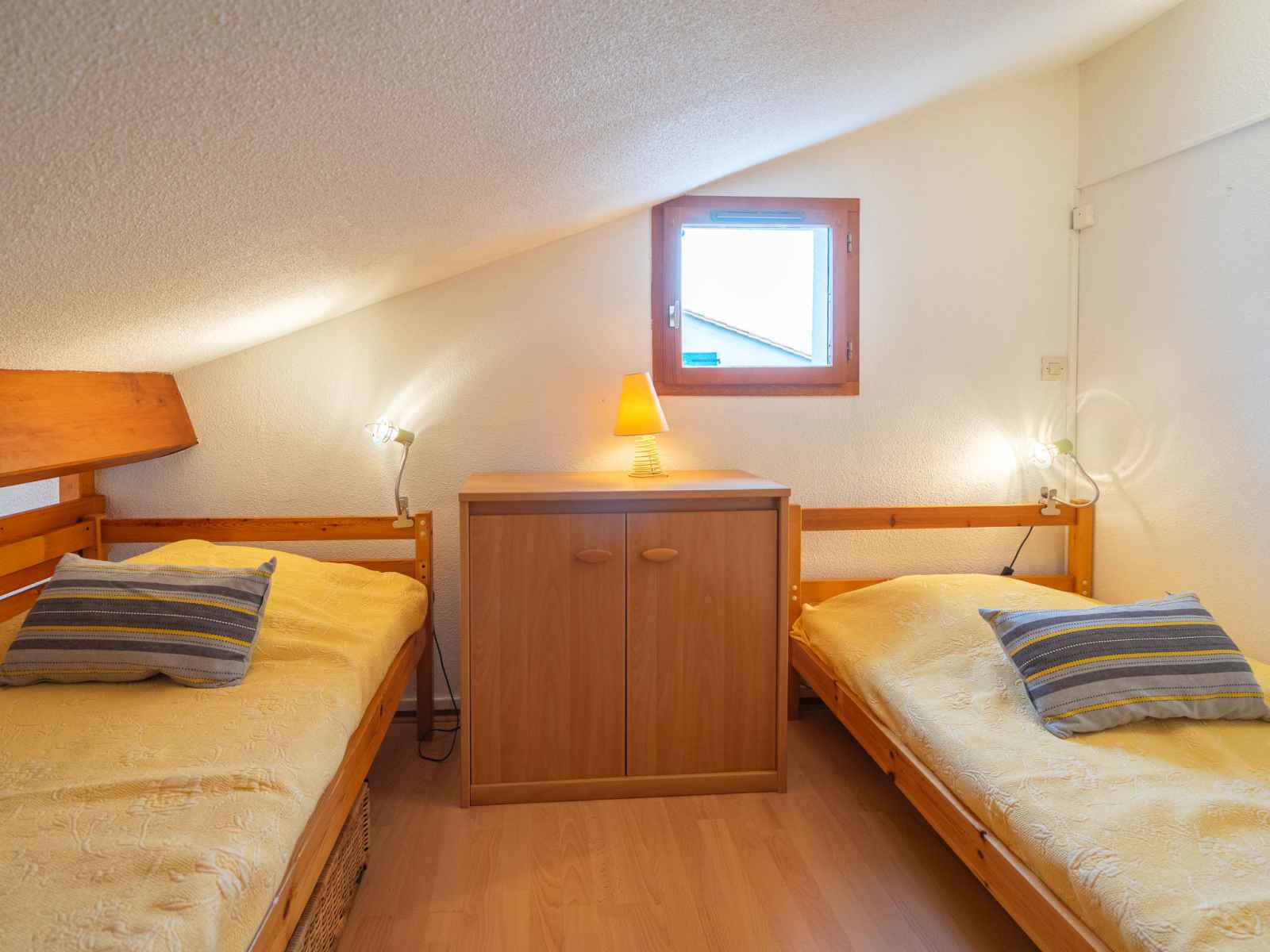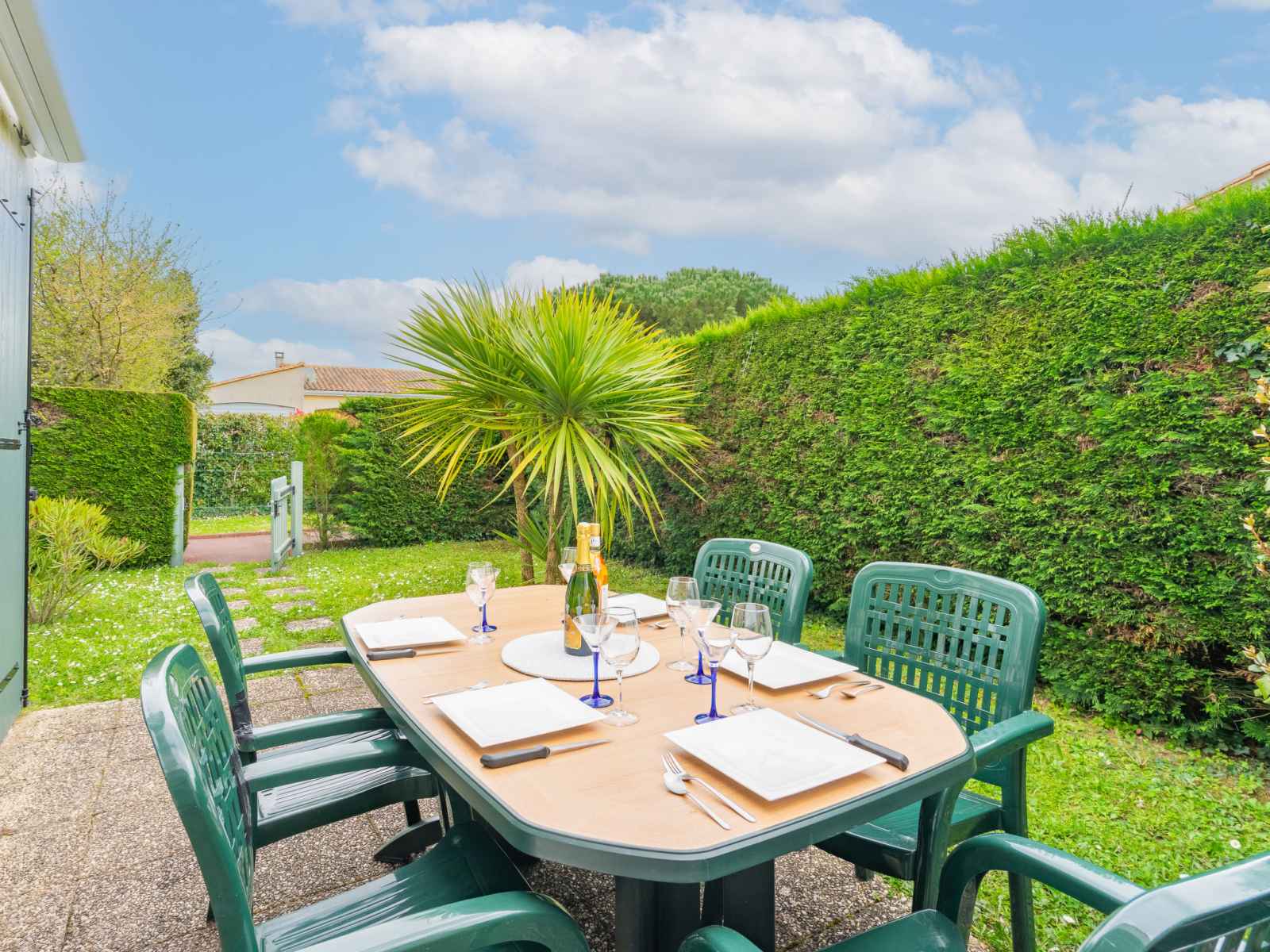 Chauffage électrique. À l'étage supérieur: galerie mansardée avec 3 lits (90 cm, longueur 190 cm). Terrasse 6 m2, jardinet 50 m2. Meubles de terrasse, barbecue. A disposition: lave-linge. Internet (Connexion WIFI, en sus). Place de parking No 140. Veuillez noter: détecteur de fumée. Annonce d'un particulier (art 155, IV du CGI).