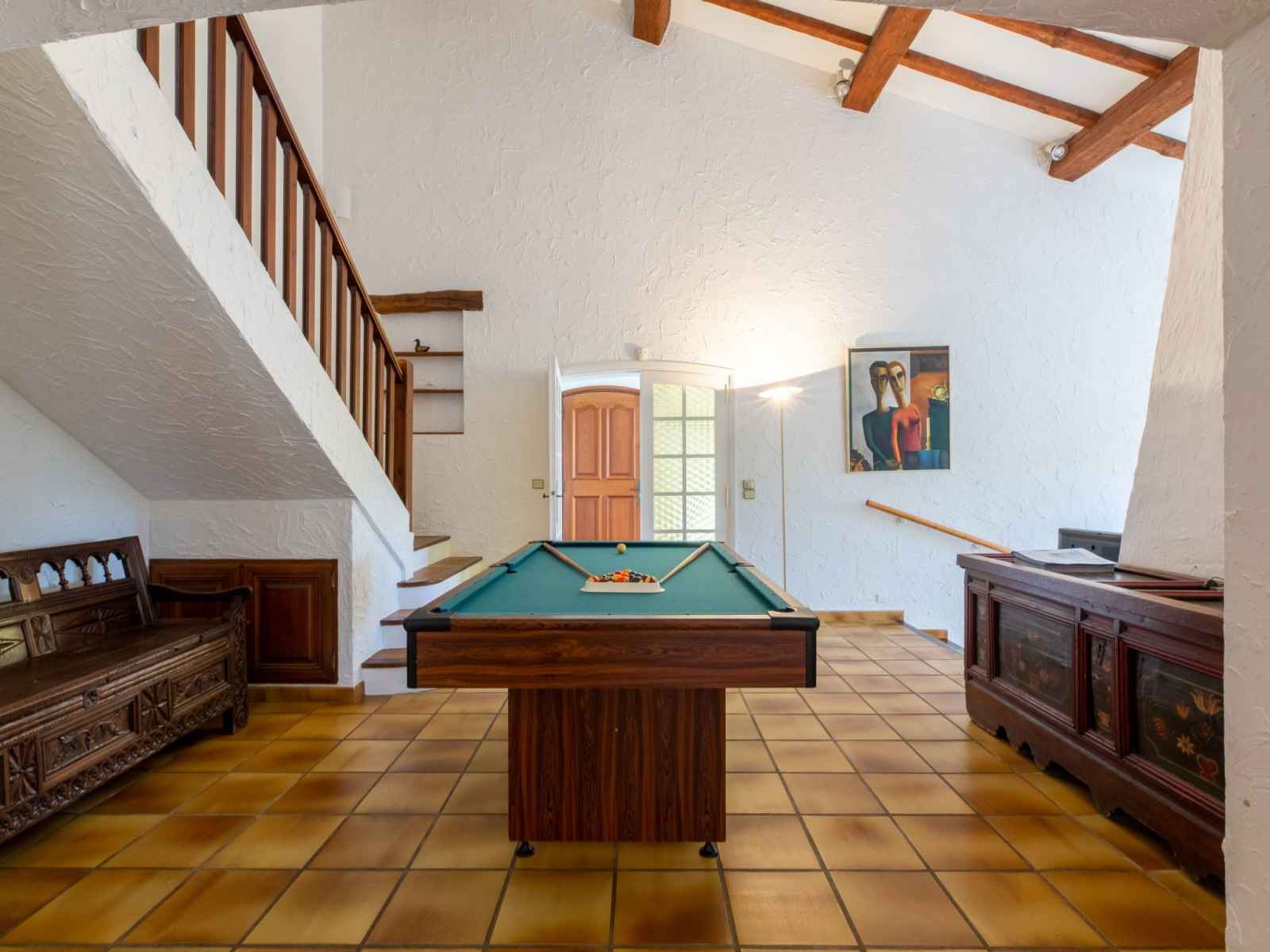 lits (90 cm, longueur 190 cm), ventilateur. Salle de billard. Cuisine ouverte (four, lave-vaisselle, 4 plaques vitrocéramiques, grille-pain, bouilloire électrique, micro-ondes, congélateur, cafetière électrique, Capsules pour machine à café (Dolce Gusto) (NON INCLUSES)). Sortie sur le jardin. WC séparé, bain/douche/WC. À l'étage supérieur: 1 chambre avec 2 lits (90 cm, longueur 200 cm), ventilateur. 1 chambre avec 2 lits (120 cm, longueur 190 cm), air-conditionné. Sortie sur le balcon. Bain/douche/WC. Chauffage électrique, chauffage par le sol. Grande terrasse 36 m2 partiellement couverte. Meubles de terrasse, barbecue électrique, chaises longues. A disposition: lave-linge, sèche-linge, chaise haute pour enfant, lit bébé. Internet (Connexion WIFI, gratuit). Place de parking (2 Voitures), garage (2 Voitures). Veuillez noter: maison non-fumeur. Détecteur de fumée.