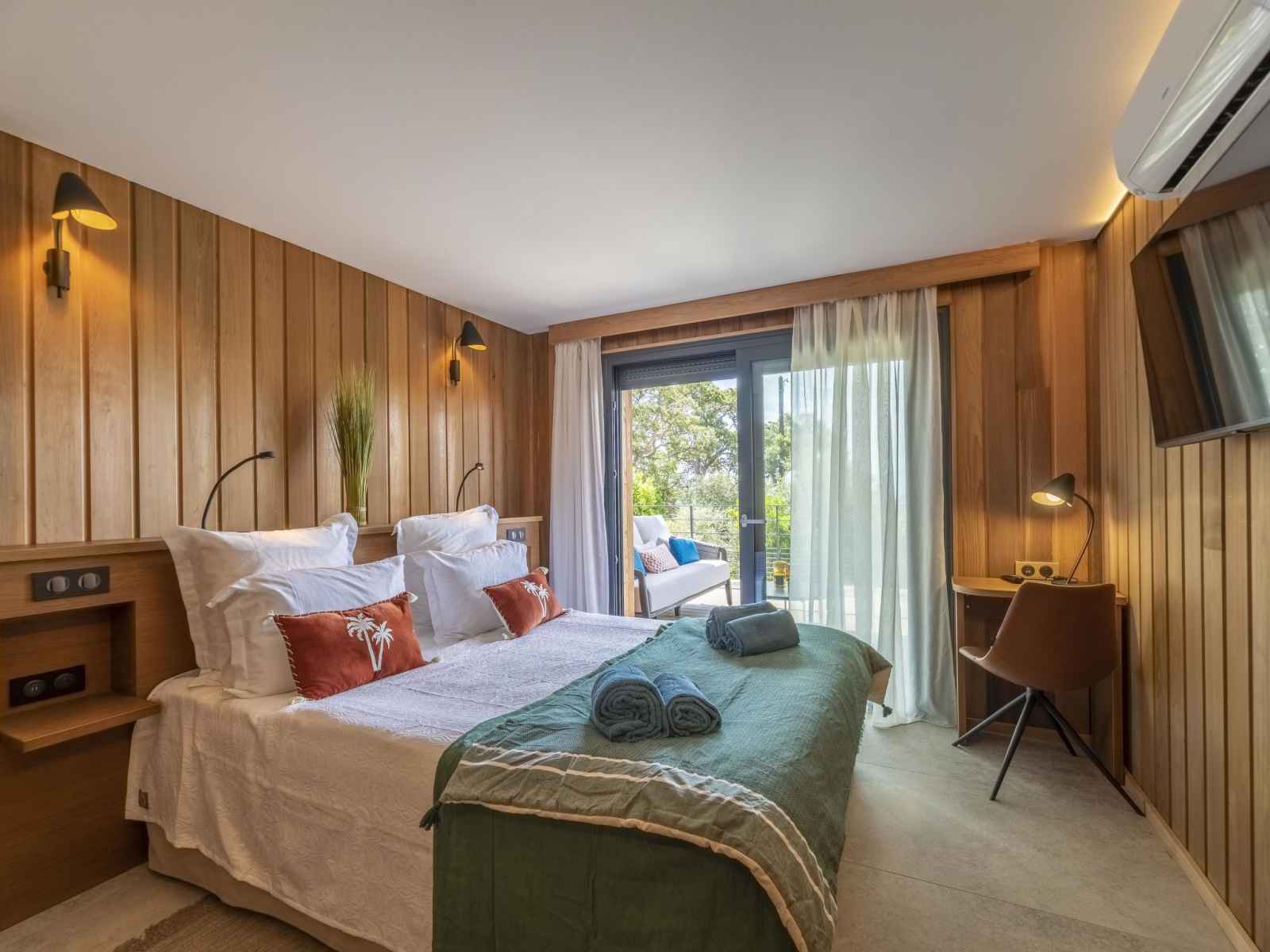"caseddu d'arasu", chalet 3 pièces 80 m2. logement idéal pour 4 adultes + 1 enfant. aménagement confortable et plaisant: séjour/salle à manger avec table pour les repas et tv (écran plat). sortie sur la terrasse. 1 chambre avec 1 grand-lit (160 cm, longueur 200 cm), douche et tv (écran plat). sortie sur la terrasse. cuisine ouverte (four,