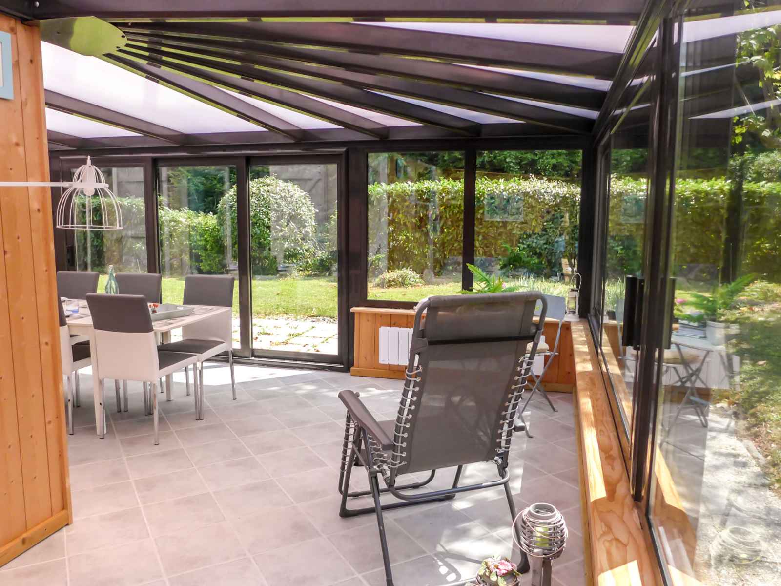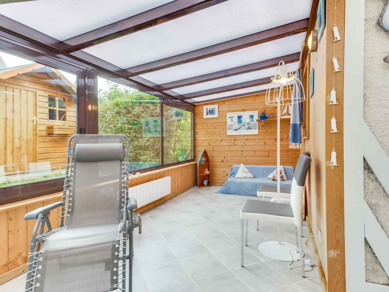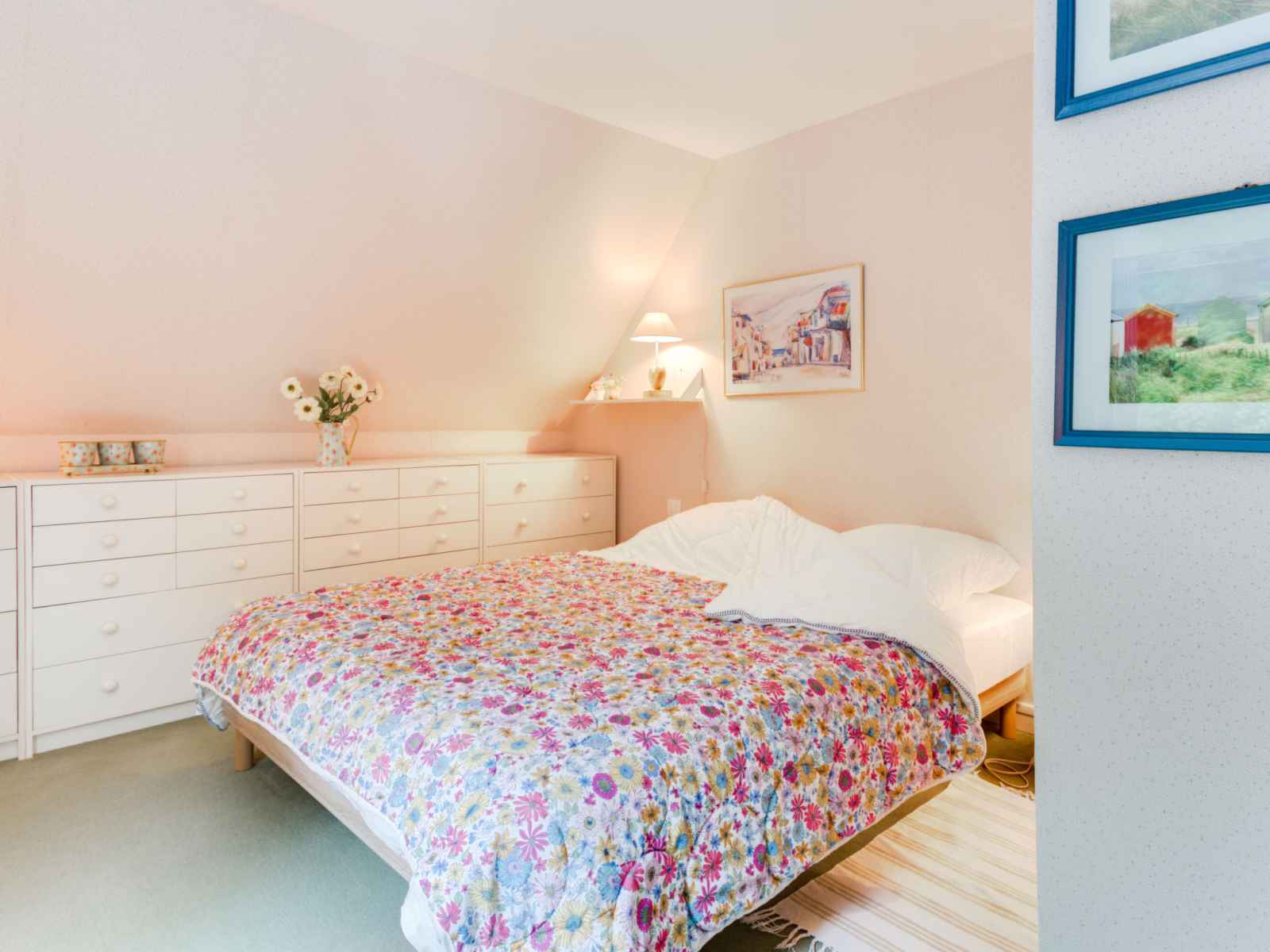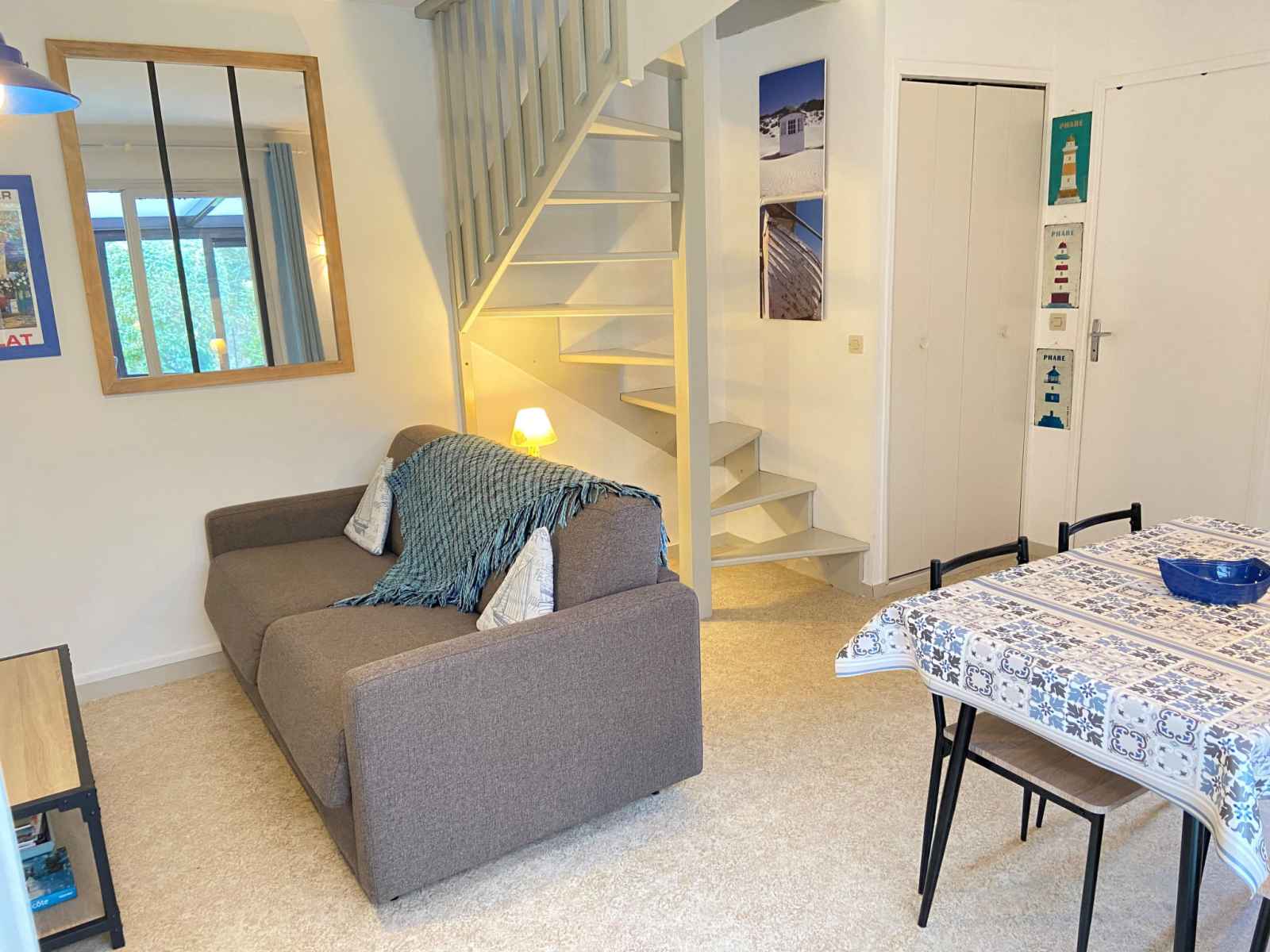 Maison mitoyenne 3 pièces 77 m2 sur 2 niveaux, situation nord-est. séjour/salle à manger avec dvd. sortie sur la véranda. cuisine ouverte (four, lave-vaisselle, 3 plaques vitrocéramiques, grille-pain, bouilloire électrique, micro-ondes, cafetière électrique). douche/wc. chauffage électrique. À l'étage supérieur: 1 chambre avec 1