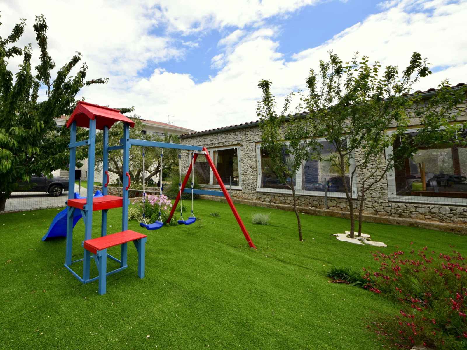 Tribunj à 5 km de vodice: maison jumelée "east", de 2 étages, année de construction 2018. dans le hameau de sovlje, à 1.5 km du centre de tribunj, situation tranquille, ensoleillée, à 250 m de la mer, à 450 m de la plage. en commun: terrain 400 m2. meubles de jardin, barbecue, espace de jeux pour les enfants (toboggan, balançoire). a