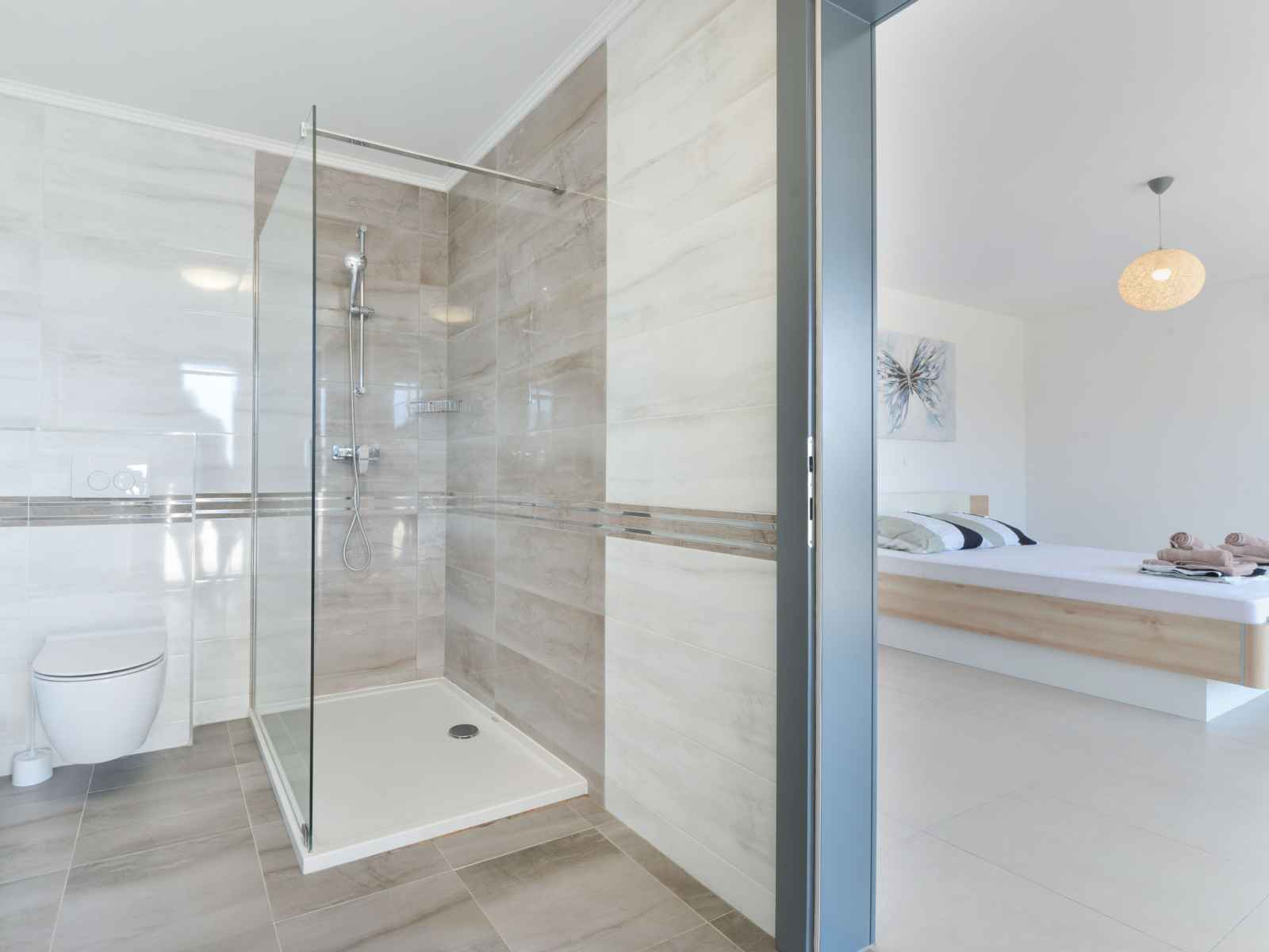 (satellite) (écran plat), air-conditionné. Sortie sur le balcon. Cuisine ouverte (four, lave-vaisselle, 4 plaques vitrocéramiques, grille-pain, bouilloire électrique, micro-ondes, congélateur, cafetière électrique). WC séparé. À l'étage supérieur: 2 chambres 20 m2, chaque chambre avec: 1 grand-lit (180 cm, longueur 200 cm), douche/WC et TV (satellite) (écran plat), air-conditionné. Sortie sur la terrasse. 1 chambre 20 m2 avec 1 grand-lit (180 cm, longueur 200 cm), douche/WC et TV (satellite) (écran plat), air-conditionné. Sortie sur le balcon. Chauffage à air chaud. 2 balcons 6 m2, terrasse 80 m2 partiellement couverte, terrasse 38 m2, couverte. Meubles de terrasse, chaises longues. Vue sur la piscine. A disposition: coffre-fort, fer à repasser, lit bébé. Internet (Connexion WIFI, gratuit). 13460