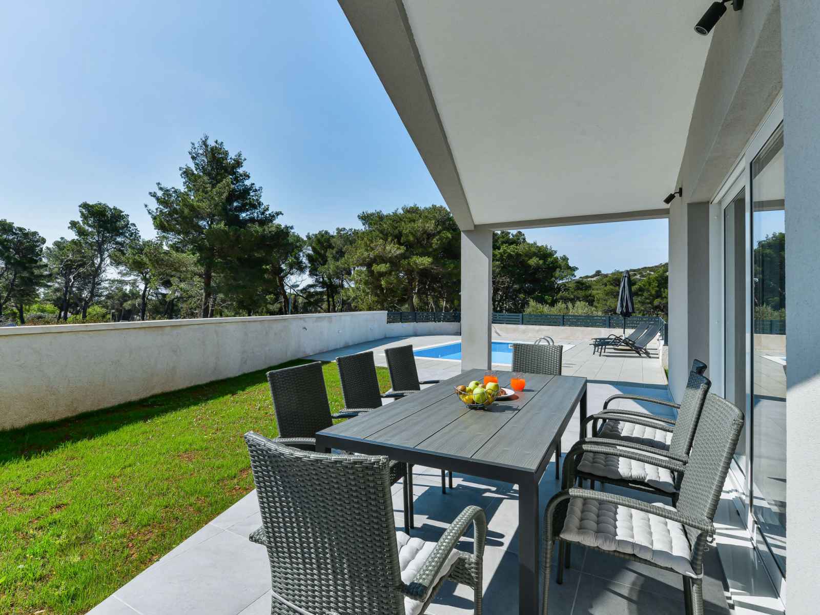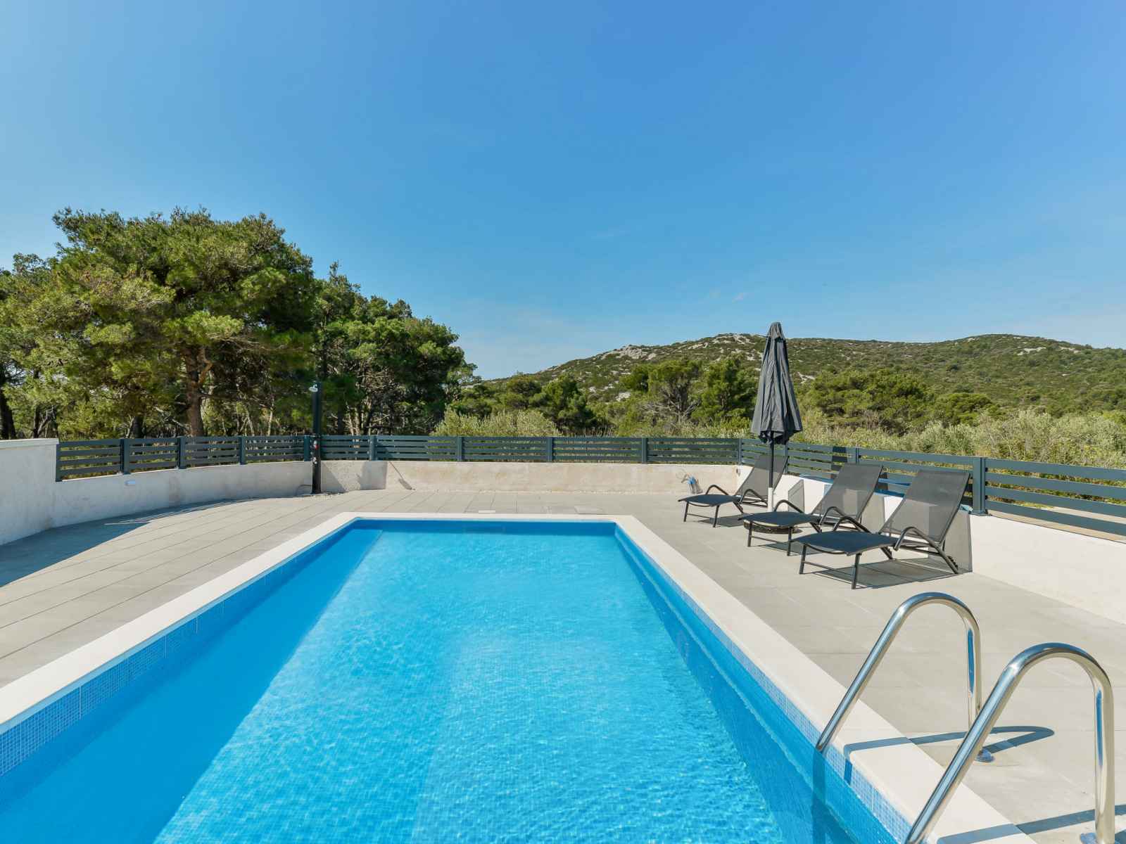 disponibilité saisonnière: 01.mai. - 31.oct.). douche extérieure, barbecue, entretien de la piscine par le propriétaire/jardinier. infrastructures de la maison: accès internet, lave-linge. place de parking (pour 2 voitures) près de la maison sur le terrain. magasins 1.5 km, restaurant 350 m, arrêt de bus 5.2 km, plage de graviers, plage bétonnée 500 m.