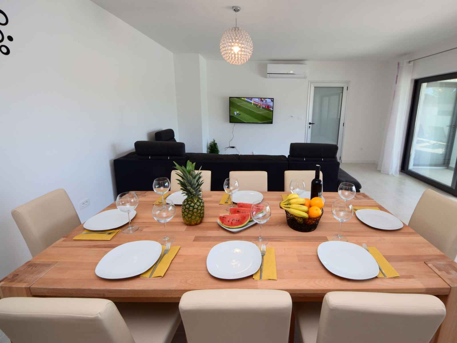 air-conditionné. Sortie sur la terrasse. Cuisine ouverte (four, lave-vaisselle, 4 plaques vitrocéramiques, grille-pain, bouilloire électrique, micro-ondes, congélateur, cafetière électrique). WC séparé. À l'étage supérieur: 1 chambre 30 m2 avec 1 grand-lit (180 cm, longueur 200 cm), douche/WC et TV (satellite) (écran plat), air-conditionné. Sortie sur la terrasse. 1 chambre 40 m2 avec 1 grand-lit (180 cm, longueur 200 cm), douche/WC et TV (satellite) (écran plat), air-conditionné. Sortie sur la terrasse. 1 chambre 30 m2 avec 1 grand-lit (180 cm, longueur 200 cm), douche/WC et TV (satellite) (écran plat), air-conditionné. Sortie sur la terrasse. Chauffage à air chaud. Terrasse 55 m2 partiellement couverte, terrasse 12 m2 partiellement couverte. Meubles de terrasse, chaises longues. Vue sur la piscine. A disposition: coffre-fort, fer à repasser, lit bébé. Internet (Connexion WIFI, gratuit). Terrasse 10 m2. 13460