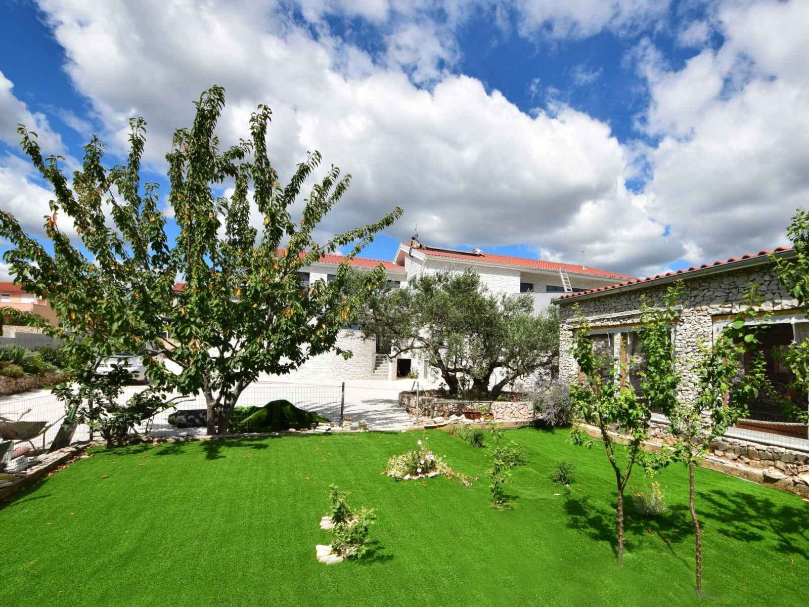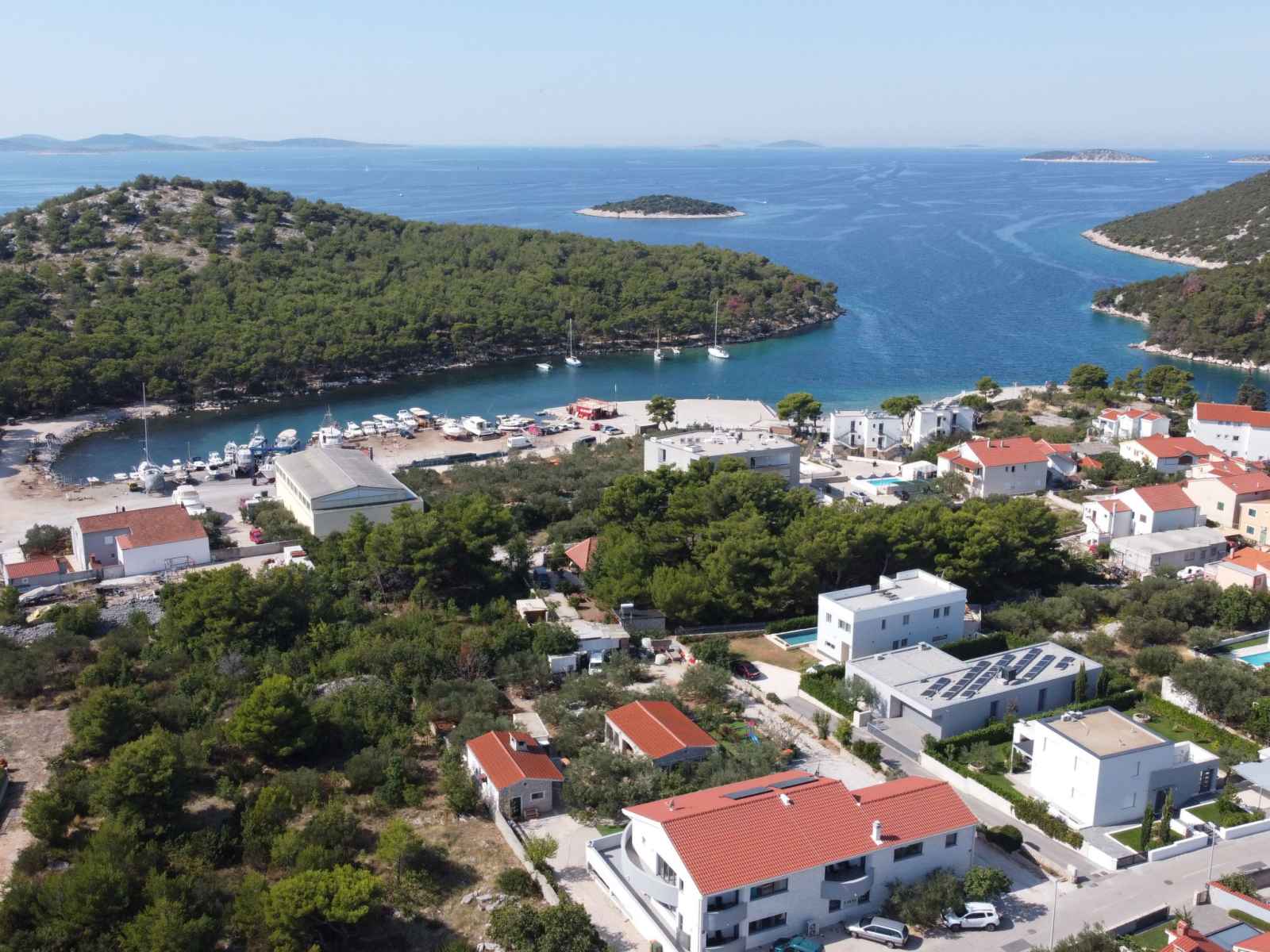 Tribunj à 5 km de vodice: maison jumelée "west", de 2 étages, année de construction 2018. dans le hameau de sovlje, à 1.5 km du centre de tribunj, situation tranquille, ensoleillée, à 250 m de la mer, à 450 m de la plage. en commun: terrain 400 m2. meubles de jardin, barbecue, espace de jeux pour les enfants (toboggan, balançoire). a