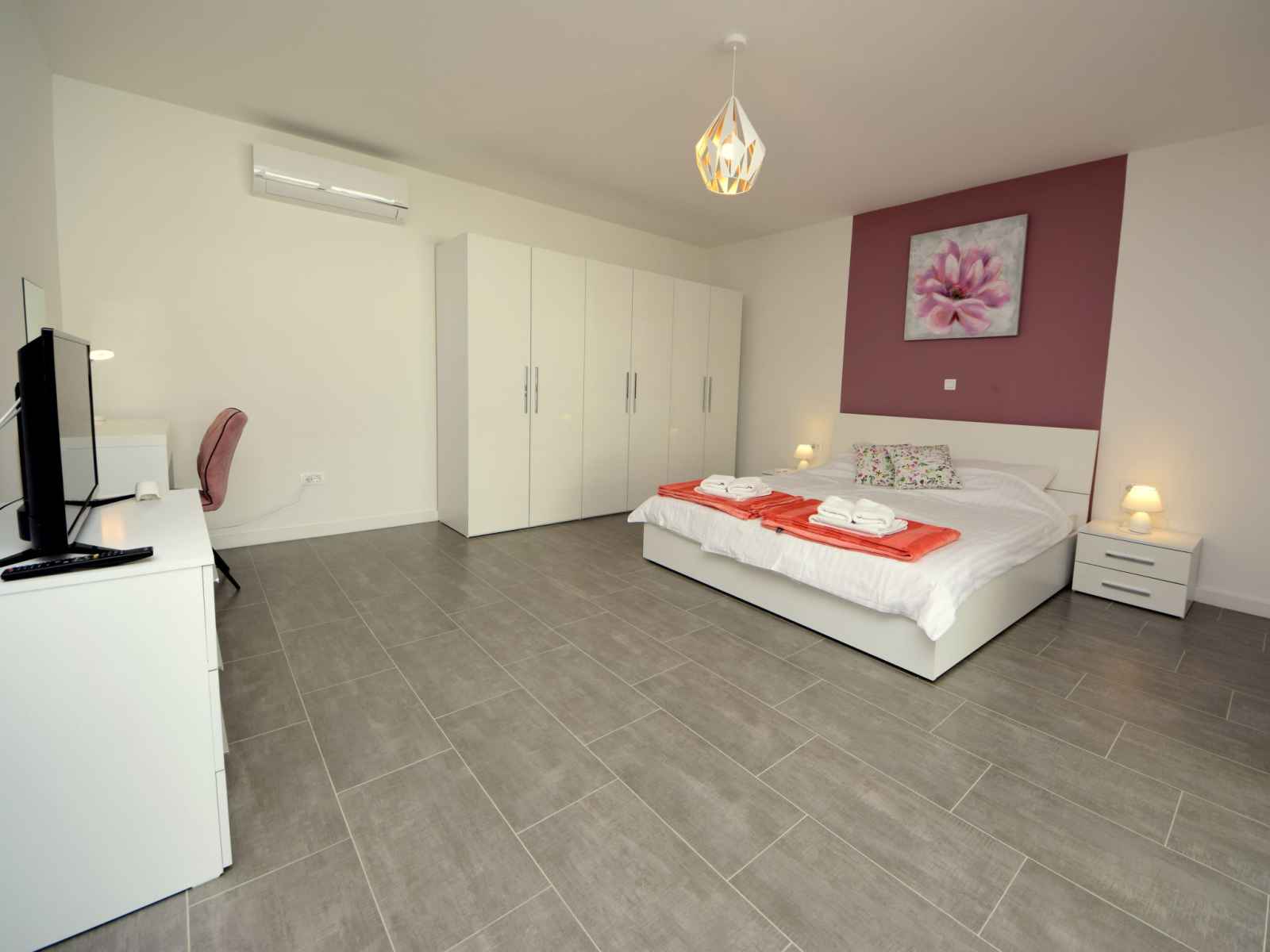 Maison jumelée 5 pièces 260 m2 sur 2 niveaux, situation sud-ouest. aménagement moderne: séjour/salle à manger 40 m2 avec 1 divan-lit double (150 cm, longueur 220 cm), tv (satellite) (écran plat), air-conditionné. sortie sur la terrasse. 1 chambre 40 m2 avec 1 grand-lit (180 cm, longueur 200 cm), douche/wc et tv (satellite) (écran plat),