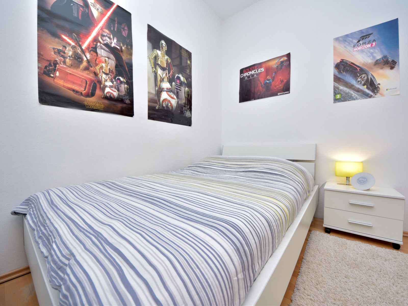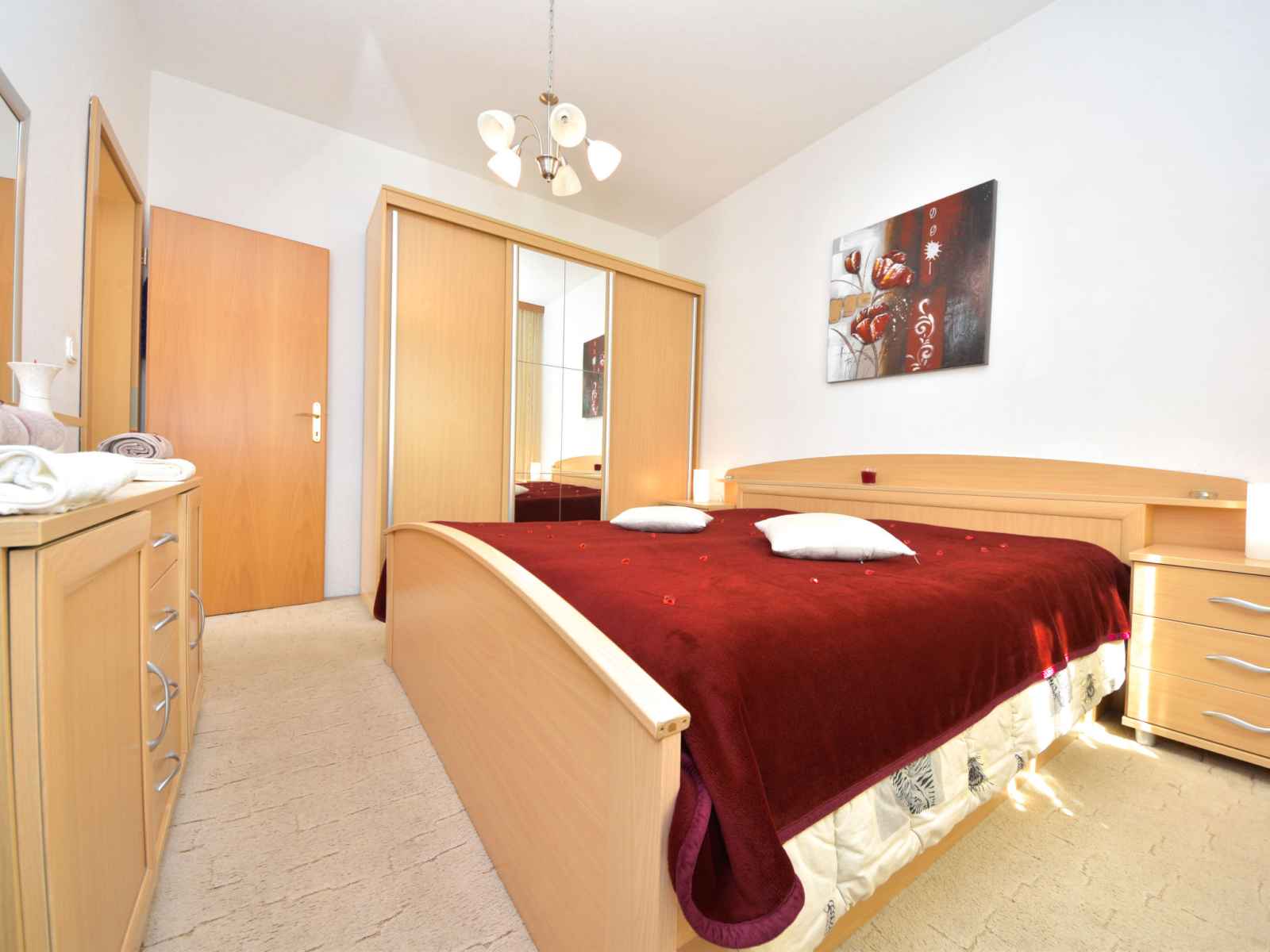 l'étage supérieur: 1 chambre avec 1 lit double (2 x 90 cm, longueur 200 cm), TV (satellite) et air-conditionné. Sortie sur la terrasse. 1 chambre avec 1 lit double et TV (satellite). 1 chambre d'enfants avec 1 lit, 1 lit gigogne et air-conditionné. Douche/WC. Pas de chauffage. Terrasse 15 m2, couverte, terrasse 15 m2. Meubles de terrasse. Vue sur le jardin. A disposition: Internet (Connexion WIFI, gratuit).