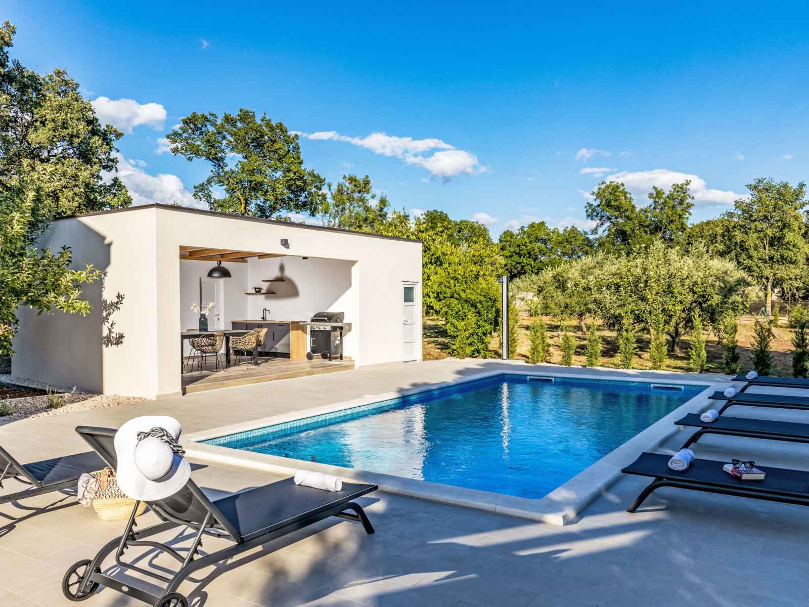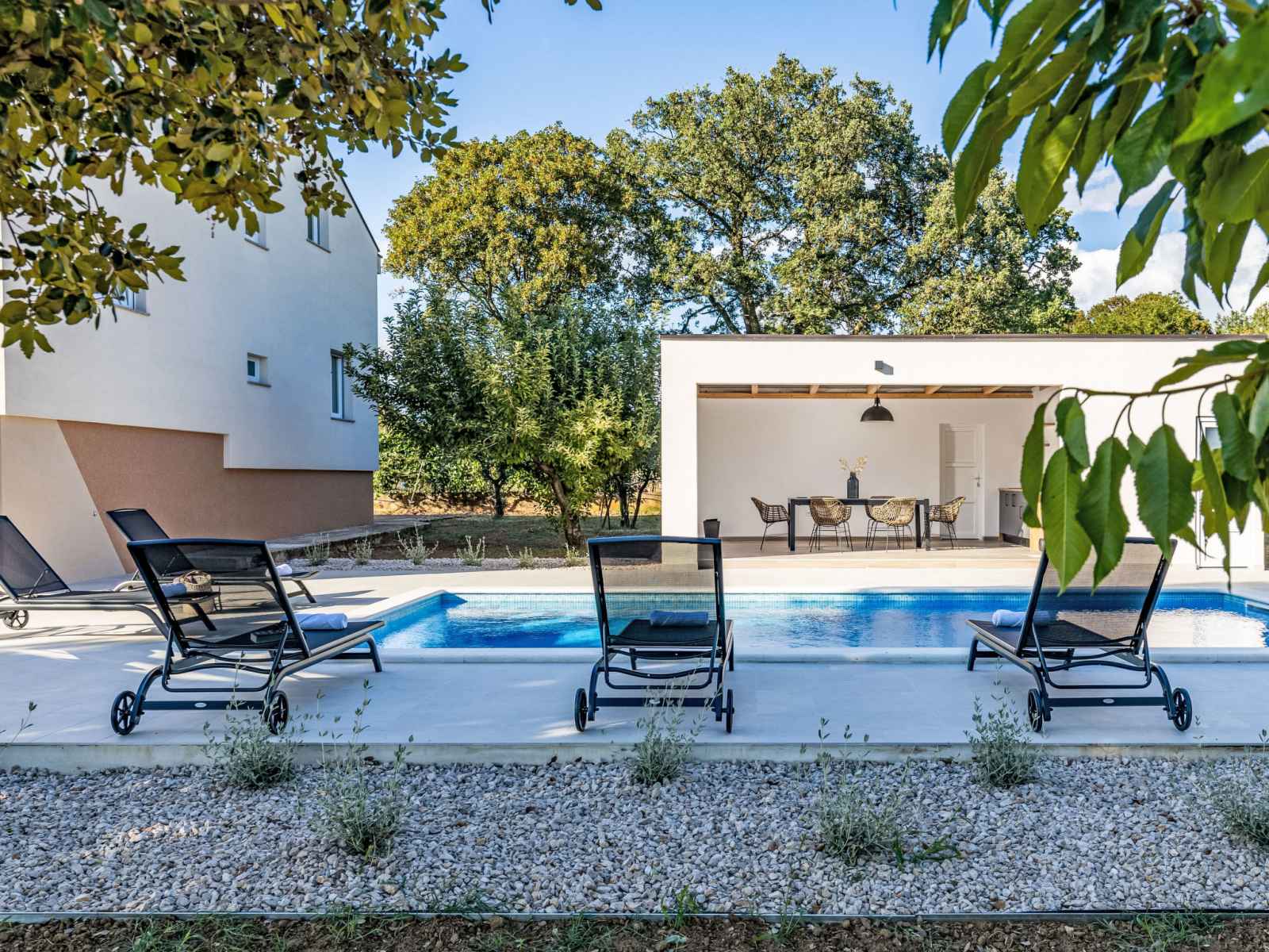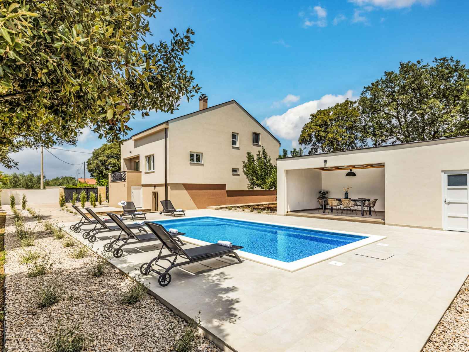 Briševo à 11 km de zadar: maison individuelle "certus", de 2 étages. situation ensoleillée, à 11 km de la mer, dans une rue. a usage privé: terrain 2'600 m2 (clôturé), piscine rectangulaire (8 x 4 m, profondeur 140 cm, disponibilité saisonnière: 02.mai. - 26.sep.) avec marches intérieures. douche extérieure, meubles de jardin,