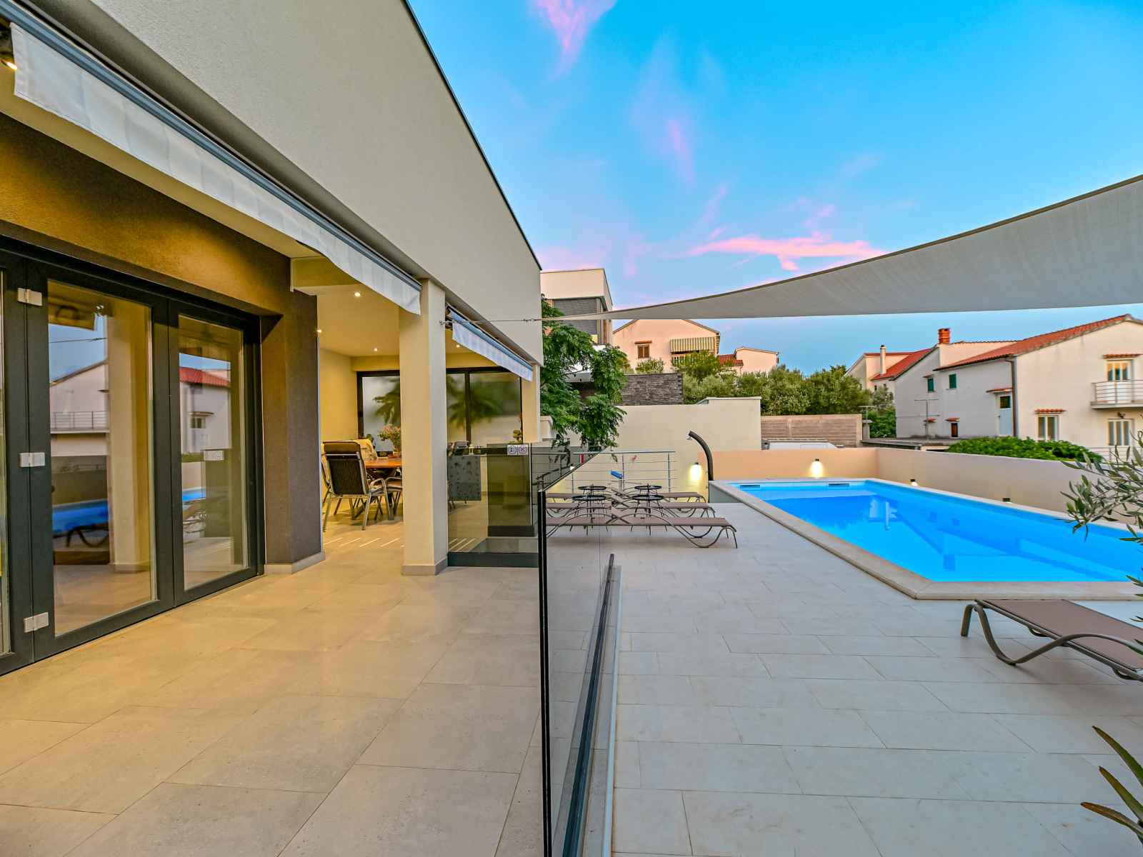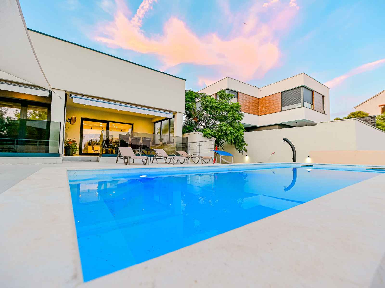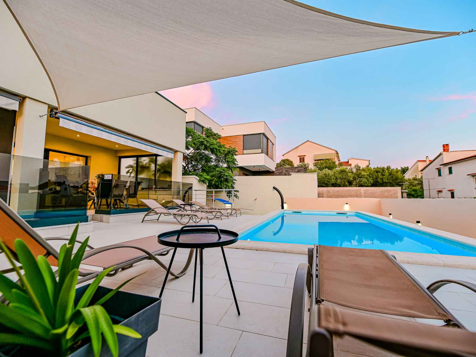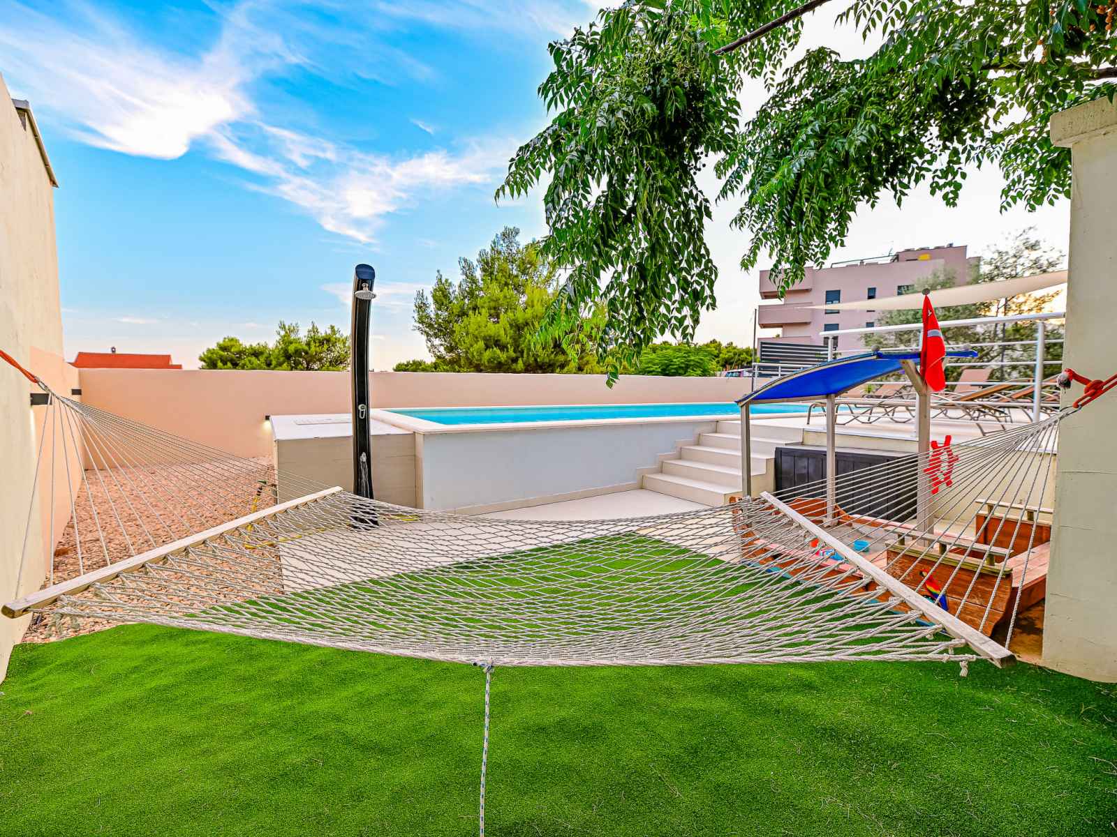 Maison individuelle "sportiva". dans le quartier de bokanjac, à 4.8 km du centre, situation tranquille, ensoleillée, surélevée, à 2.2 km de la mer, à 2.2 km de la plage. a usage privé: terrain 400 m2 (clôturé), piscine rectangulaire (8 x 4 m, profondeur 150 cm, disponibilité saisonnière: 01.mai. - 01.oct.). douche extérieure, meubles