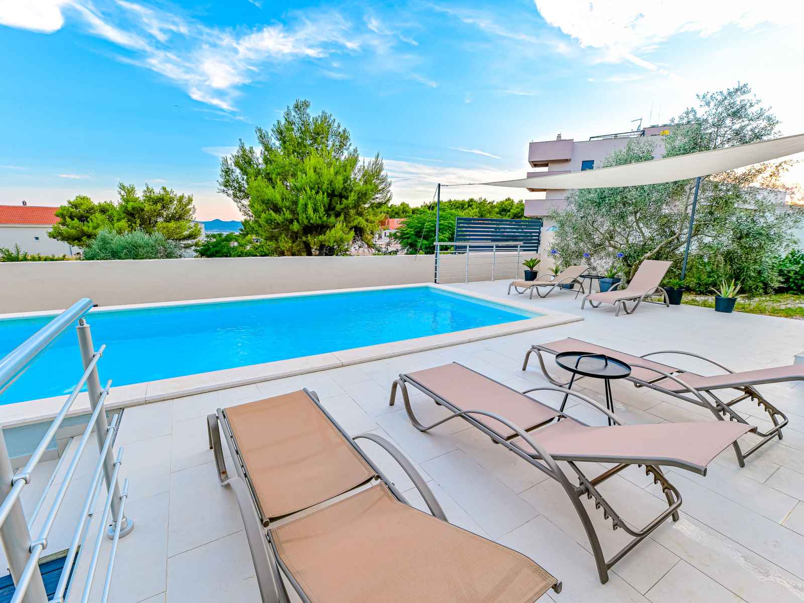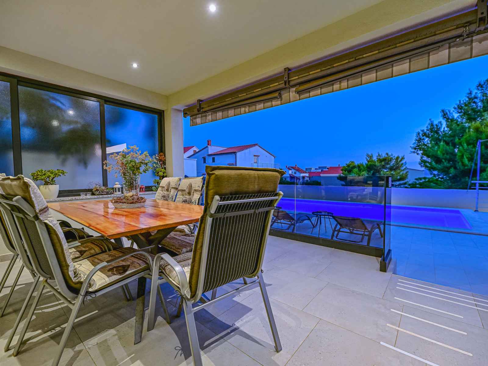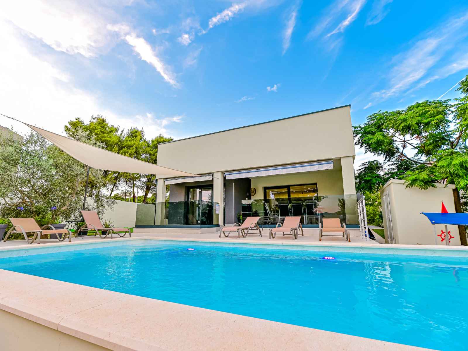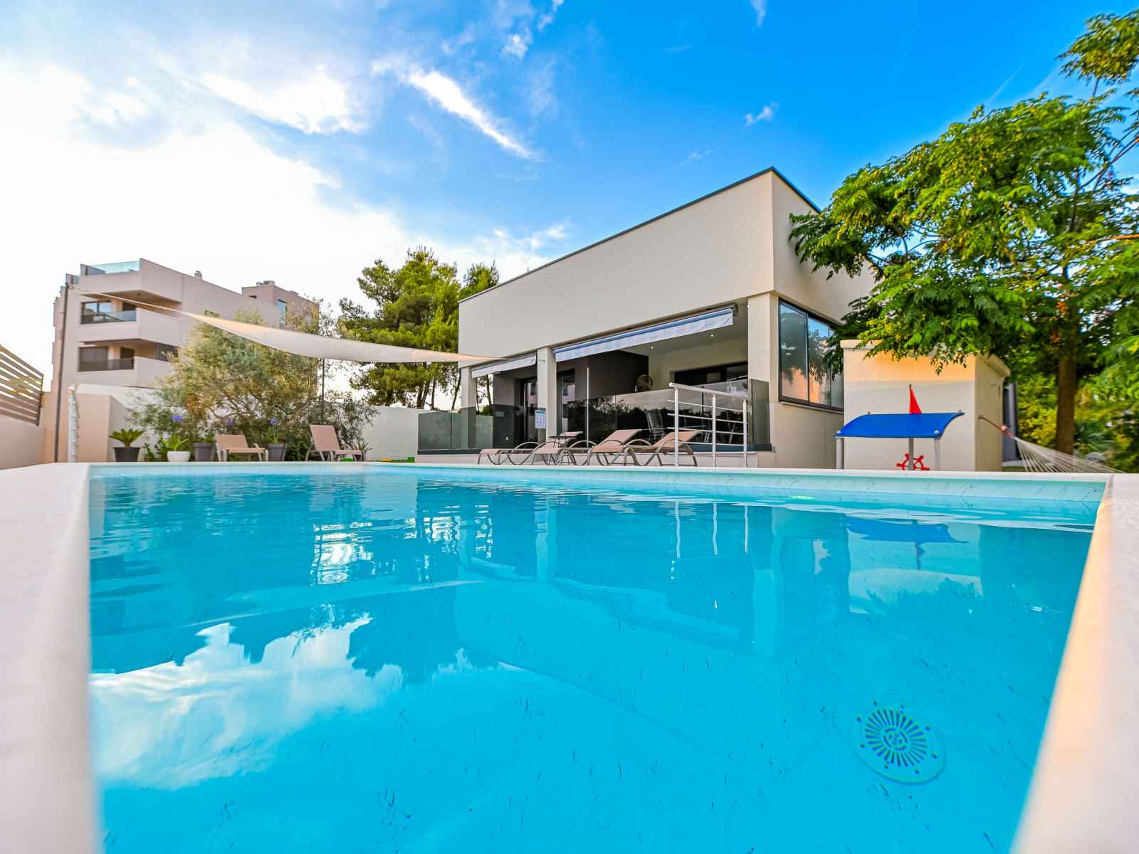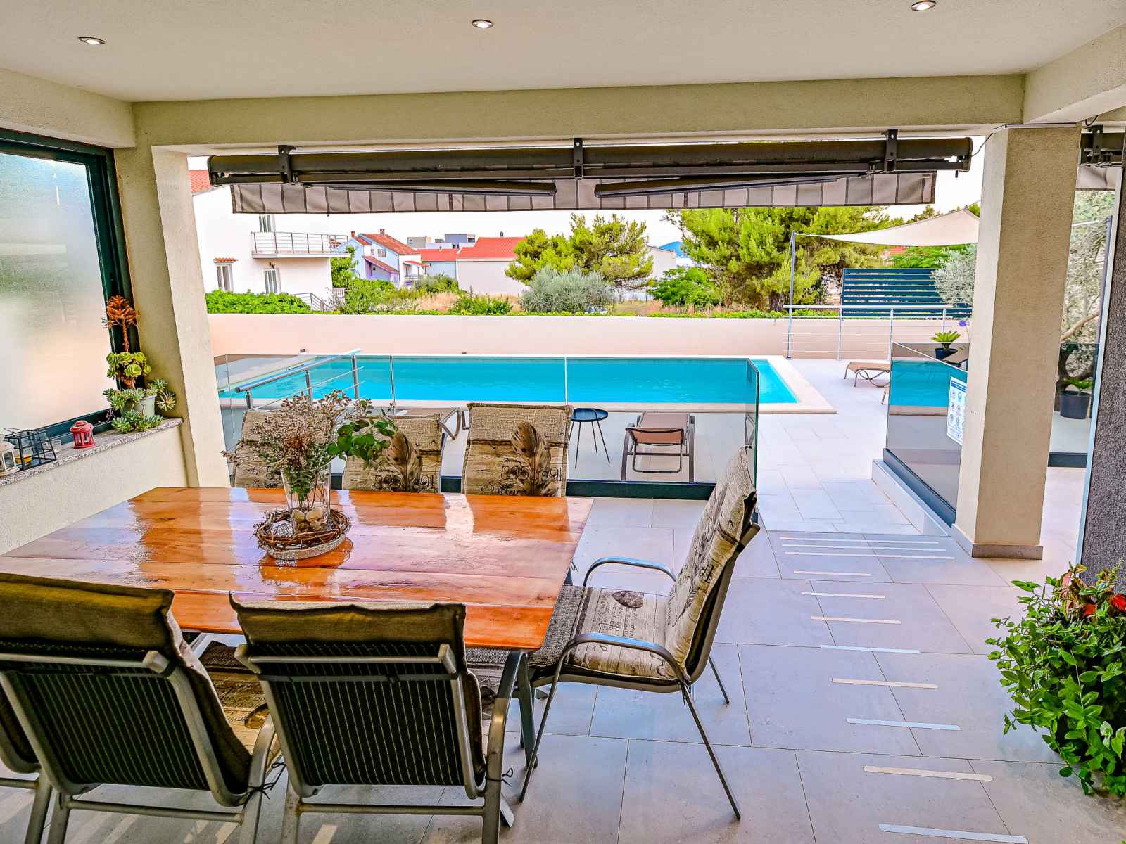 Maison individuelle "sportiva". dans le quartier de bokanjac, à 4.8 km du centre, situation tranquille, ensoleillée, surélevée, à 2.2 km de la mer, à 2.2 km de la plage. a usage privé: terrain 400 m2 (clôturé), piscine rectangulaire (8 x 4 m, profondeur 150 cm, disponibilité saisonnière: 01.mai. - 01.oct.). douche extérieure, meubles