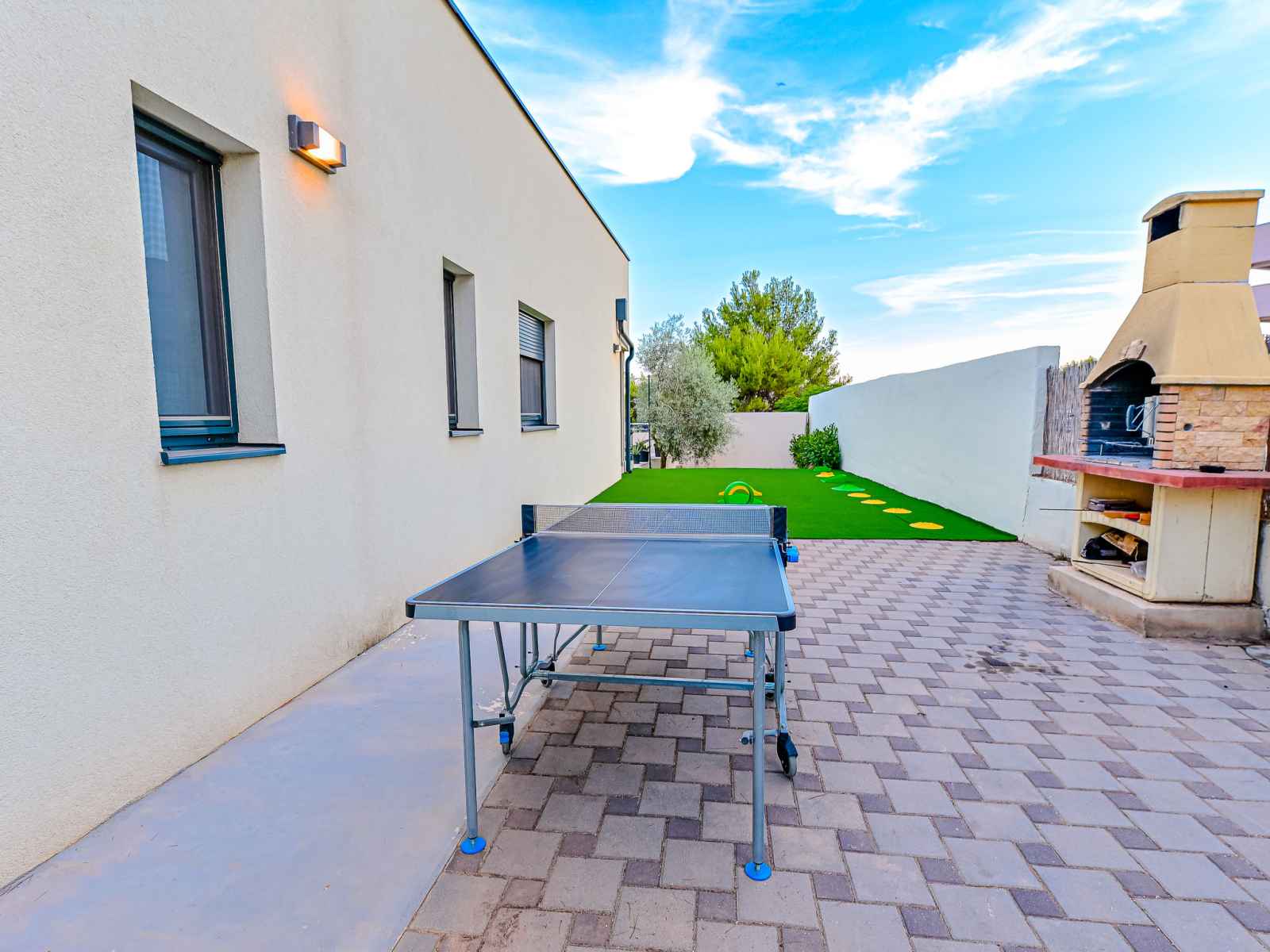 de jardin, barbecue. infrastructures de la maison: accès internet, salle fitness, trampoline, lave-linge. place de parking (pour 2 voitures) près de la maison sur le terrain. magasins 600 m, restaurant 1 km, arrêt de bus 300 m, plage de graviers 2.2 km. tennis 4.5 km.