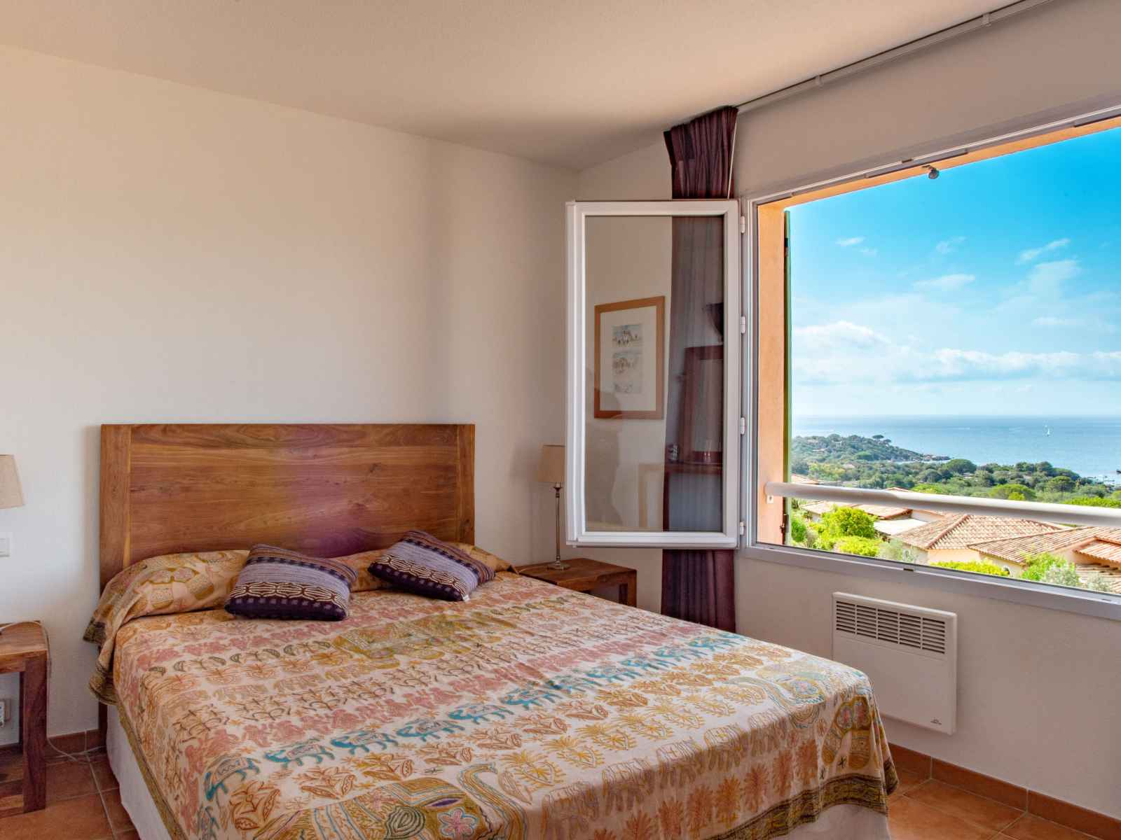 "les hameaux de santa giulia", maison mitoyenne 2 pièces 38 m2, situation sud. clair, aménagement agréable: séjour/chambre à coucher avec baie vitrée avec 1 divan-lit double, table pour les repas et tv. sortie sur le balcon. 1 chambre avec 1 grand-lit (160 cm). cuisine ouverte (4 plaques de cuisson, lave-vaisselle, micro-ondes, congélateur,