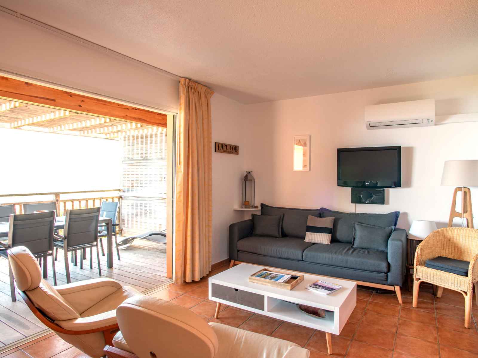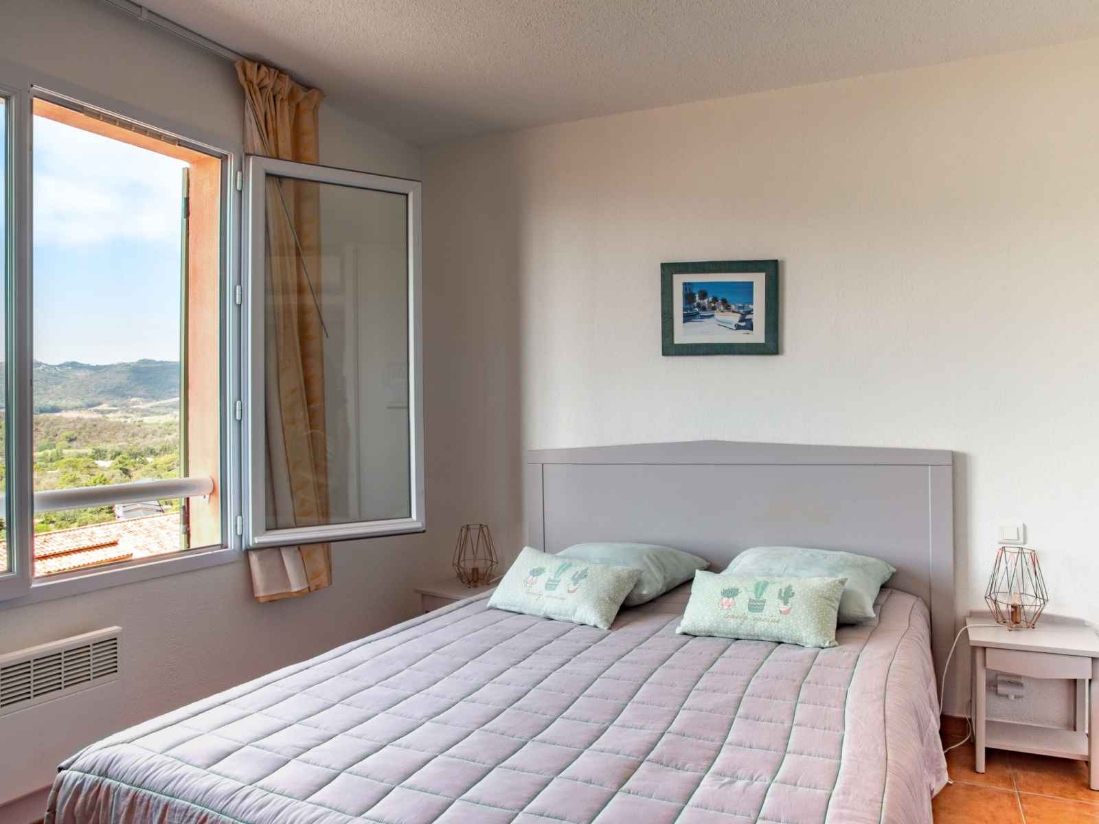 "les hameaux de santa giulia", maison mitoyenne 3 pièces 60 m2 sur 2 niveaux, situation sud. clair, aménagement confortable et agréable: séjour/chambre à coucher avec baie vitrée avec 1 divan-lit double, table pour les repas et tv. sortie sur le balcon. 1 chambre avec 2 lits. cuisine ouverte (4 plaques de cuisson, lave-vaisselle,