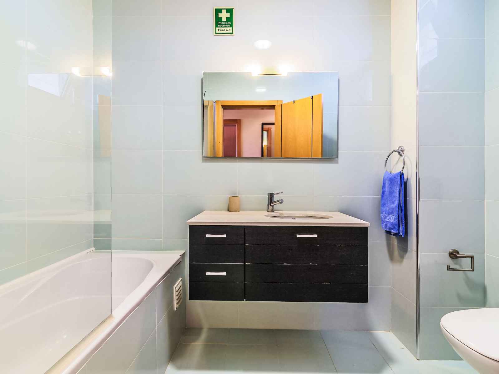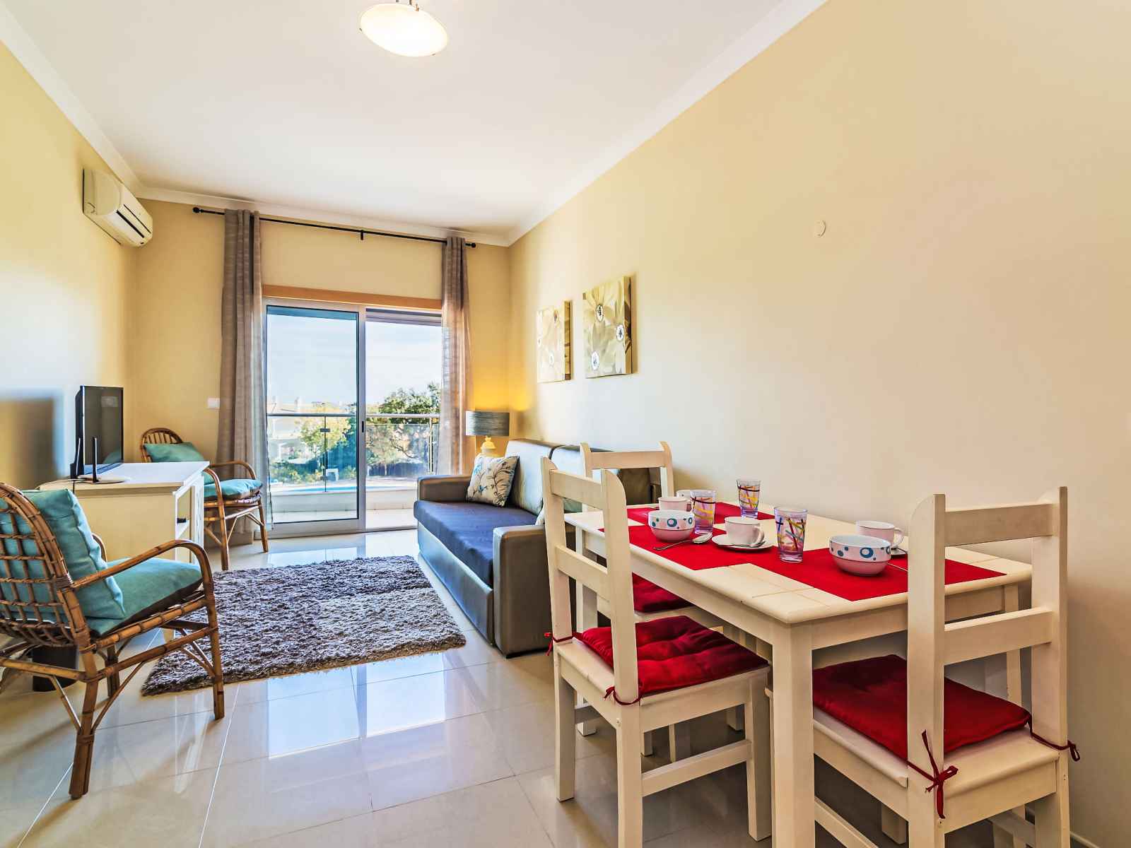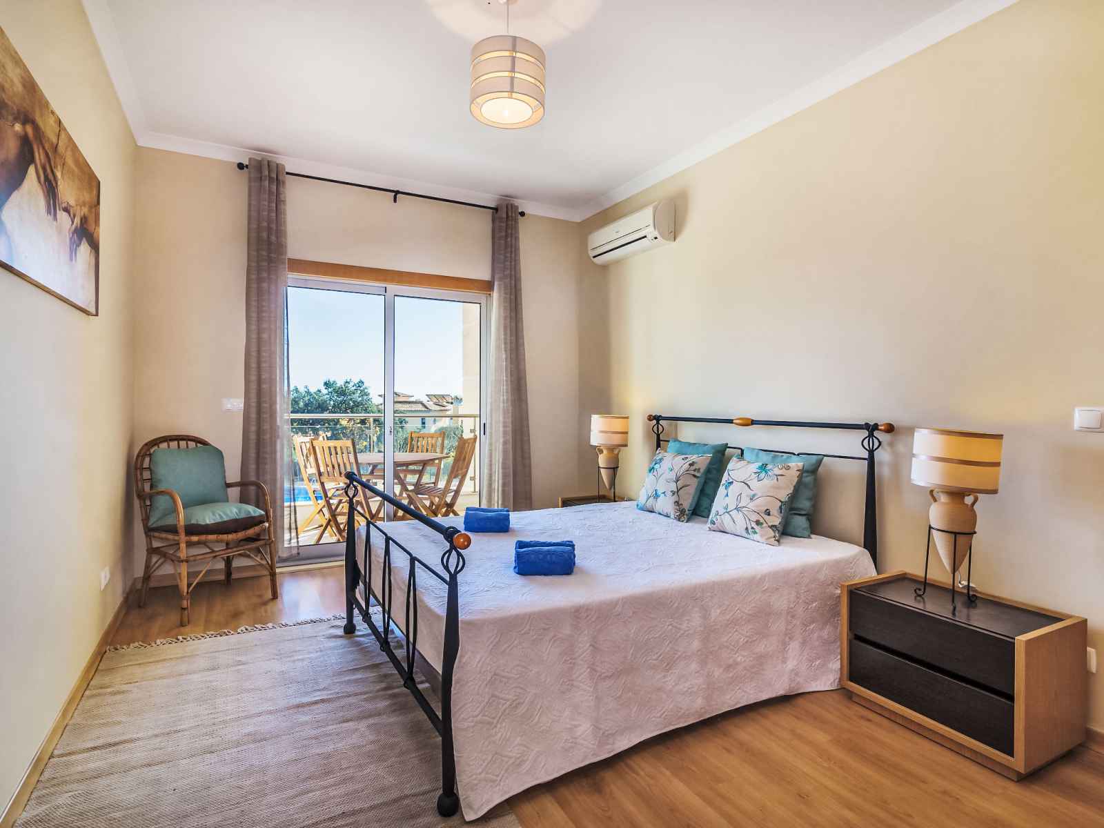 "monte da eira", apt 2 pièces 51 m2 au 1er étage. aménagement très confortable et plaisant: 1 chambre avec 1 grand-lit (180 cm, longueur 200 cm), air-conditionné, chauffage à air chaud et volet roulant électrique. sortie sur la loggia. cuisine ouverte (four, lave-vaisselle, 4 plaques vitrocéramiques, micro-ondes, congélateur, cafetière