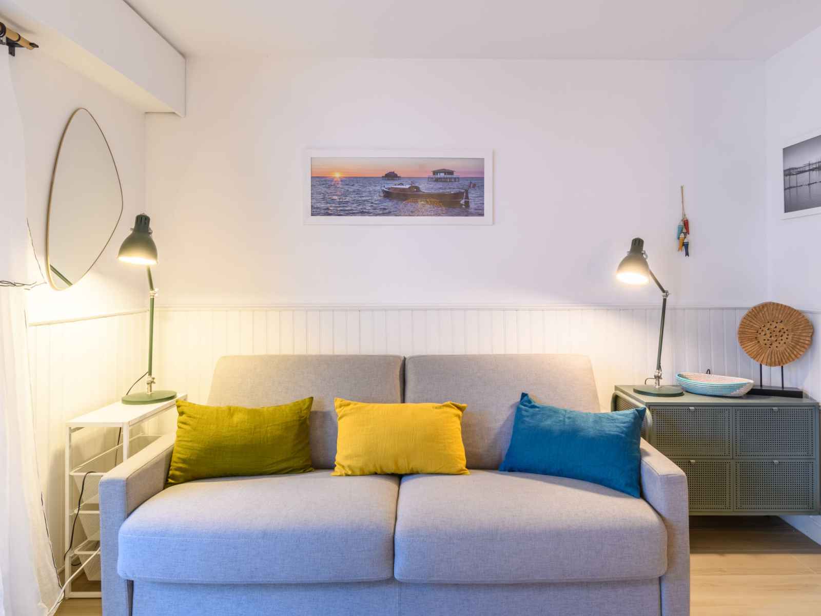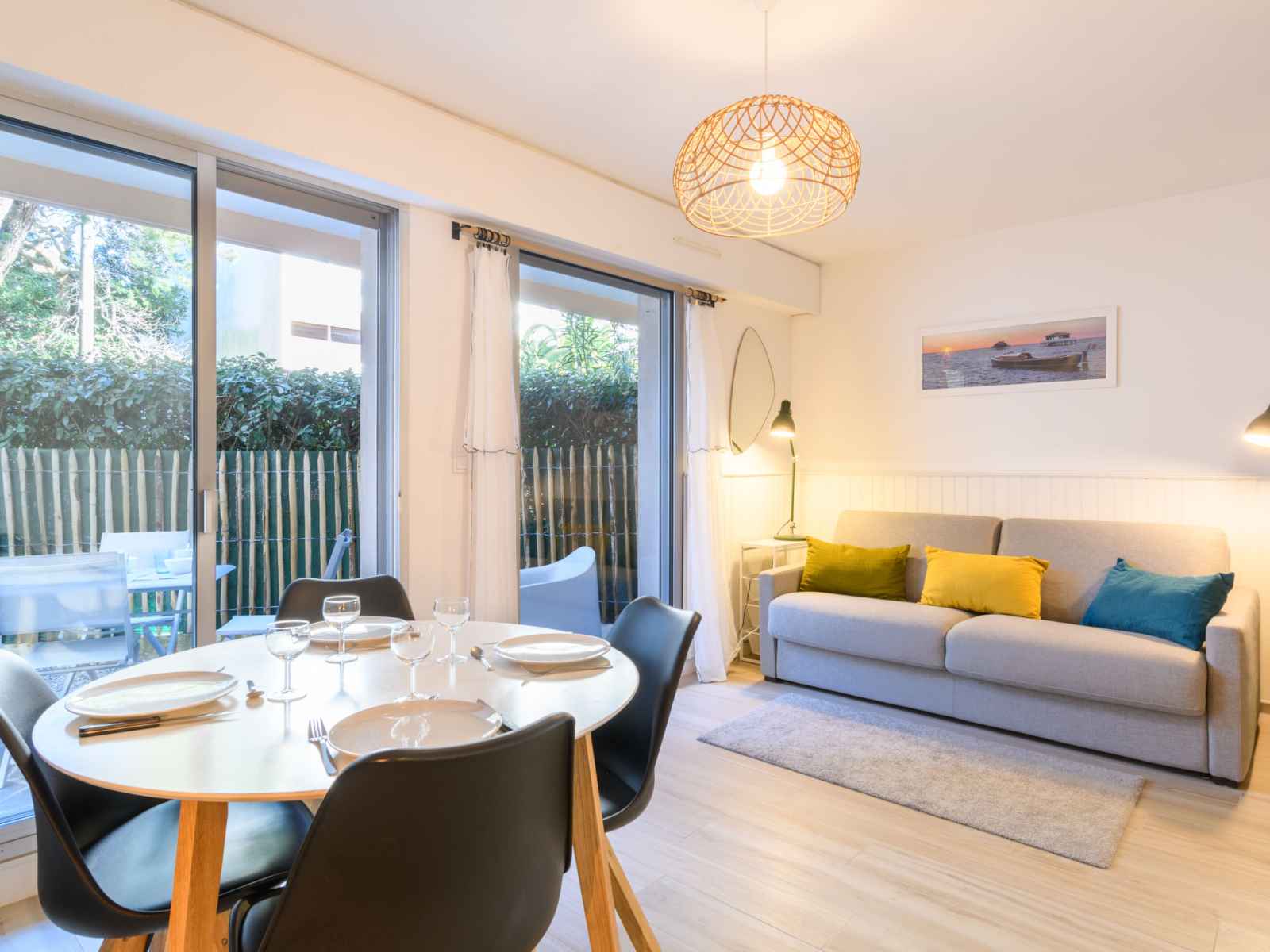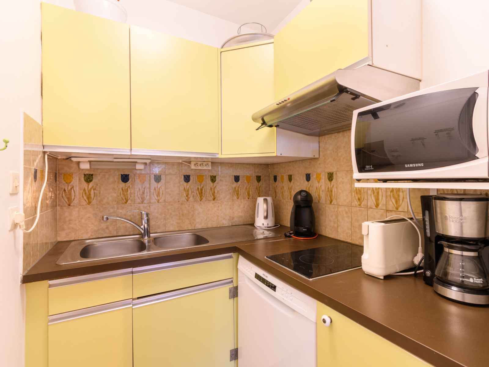 Studio 29 m2, au rez-de-chaussée. aménagement agréable et de bon goût: séjour/salle à manger avec 1 divan-lit double (1 x 160 cm, longueur 200 cm), tv (écran plat). sortie sur la terrasse. cuisine (four, lave-vaisselle, 2 plaques à induction, grille-pain, bouilloire électrique, micro-ondes, cafetière électrique, capsules pour machine à