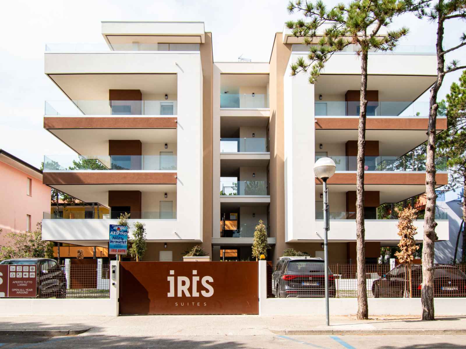 Résidence confortable "iris suite", de 5 étages, année de construction 2021. 16 appartements dans la résidence. dans le quartier de bibione spiaggia, à 100 m du centre de bibione, à 13 km du centre de lignano, à 100 km du centre de venezia, à 450 m de la mer, à 450 m de la plage. en commun: terrain (clôturé), piscine (6 x 6 m,