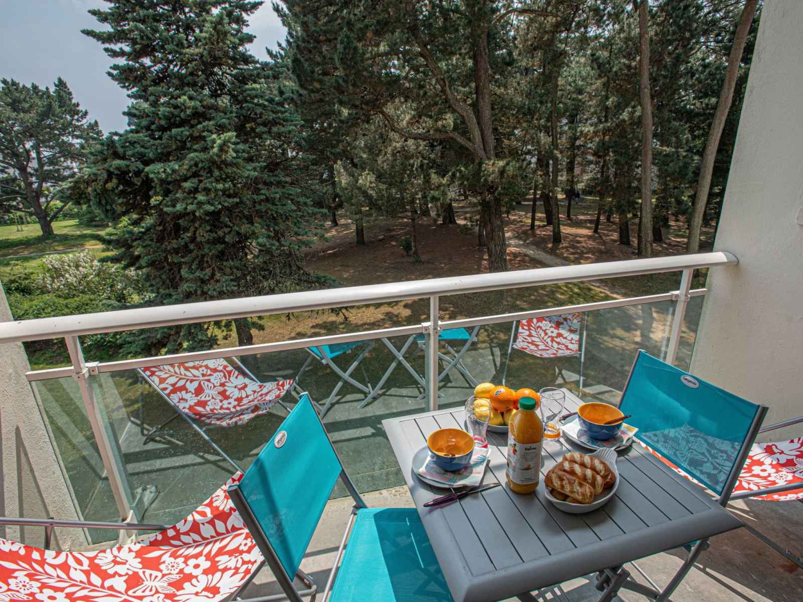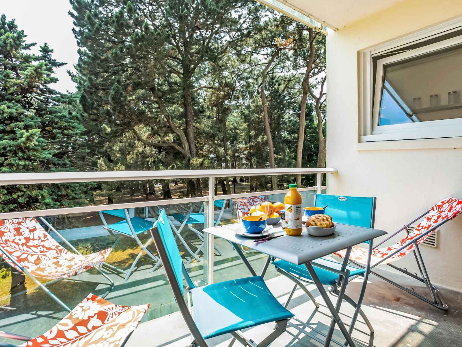 Balcon 5 m2, situation sud. Mobilier de balcon, chaises longues (2). Belle vue sur le jardin. A disposition: lit bébé jusqu'à 2 ans, sèche-cheveux, bois (gratuit). Internet (Connexion WIFI, en sus). Place de parking (cloturée, 1 Voiture). Veuillez noter: logement non-fumeur. 1 animal/ chien de petite taille autorisé. Détecteur de fumée. 56034000236B1
