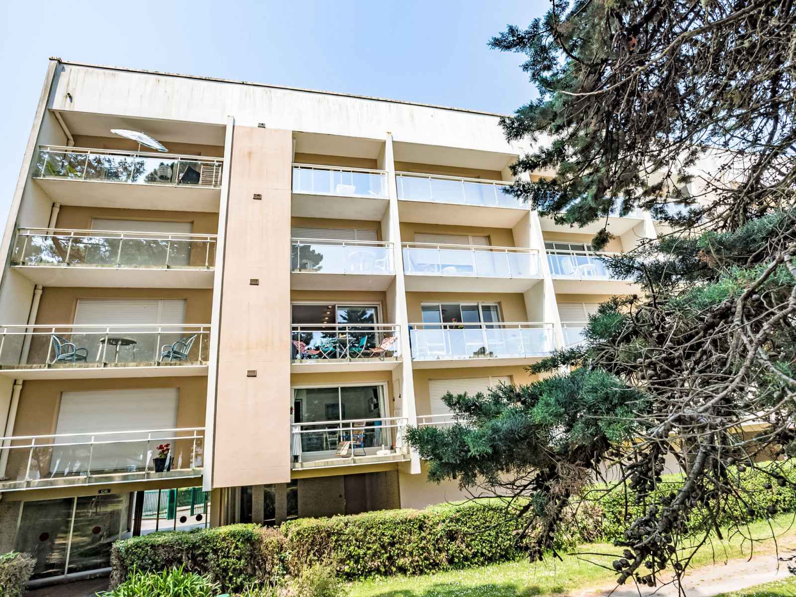 Résidence "port an dro", de 4 étages, environnée par les arbres. dans la localité, à 100 m du centre, excellente situation: centrale mais tranquille, à 100 m de la mer, à 100 m de la plage. en commun: parc (clôturé). infrastructures de la maison: réduit pour bicyclettes. place de parking. magasins 100 m, magasin d'alimentation 200 m,