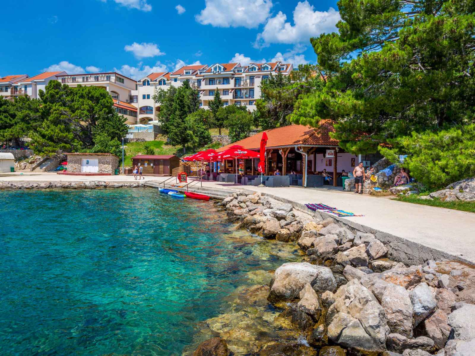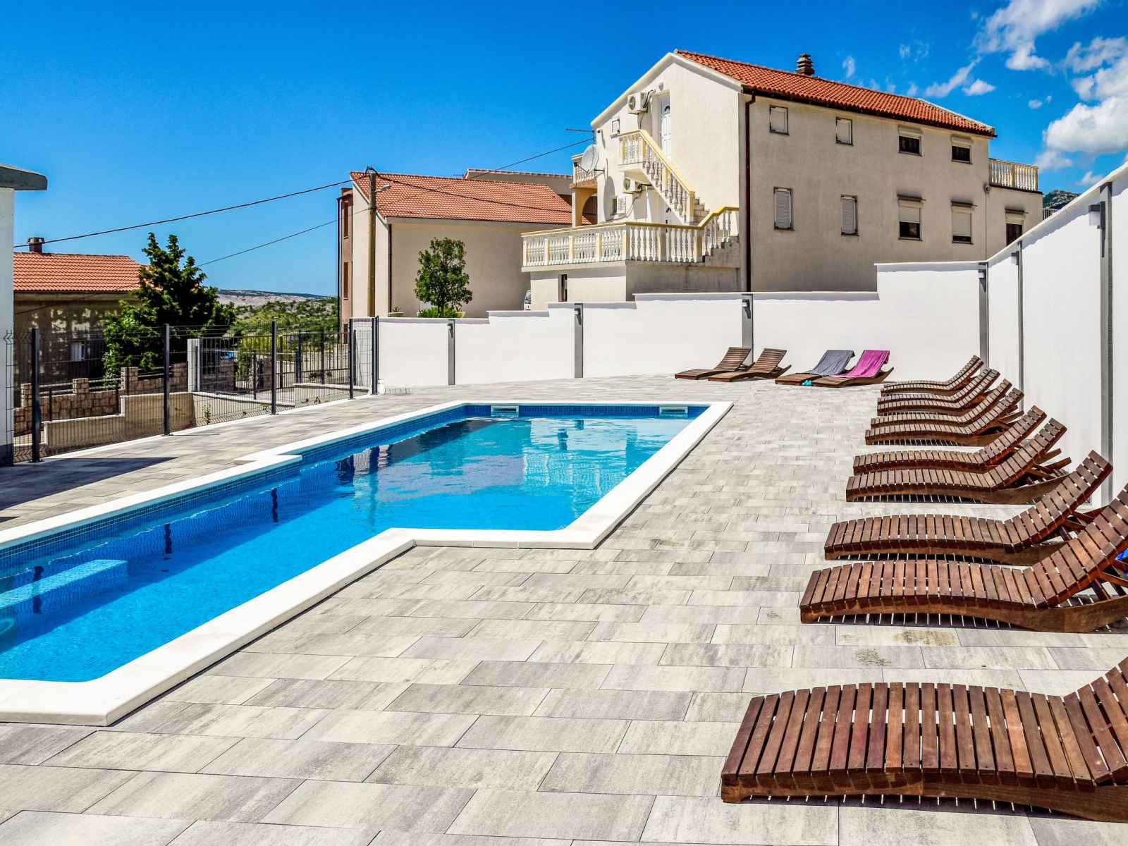 Ribarica à 5 km de karlobag: immeuble "delfin". situation tranquille, ensoleillée, à 250 m de la mer, à 250 m de la plage. en commun: terrain 400 m2, piscine rectangulaire (12 x 4 m, profondeur 130 cm, disponibilité saisonnière: 01.jun. - 15.sep.) avec marches intérieures. douche extérieure. infrastructures de la maison: restaurant, accès