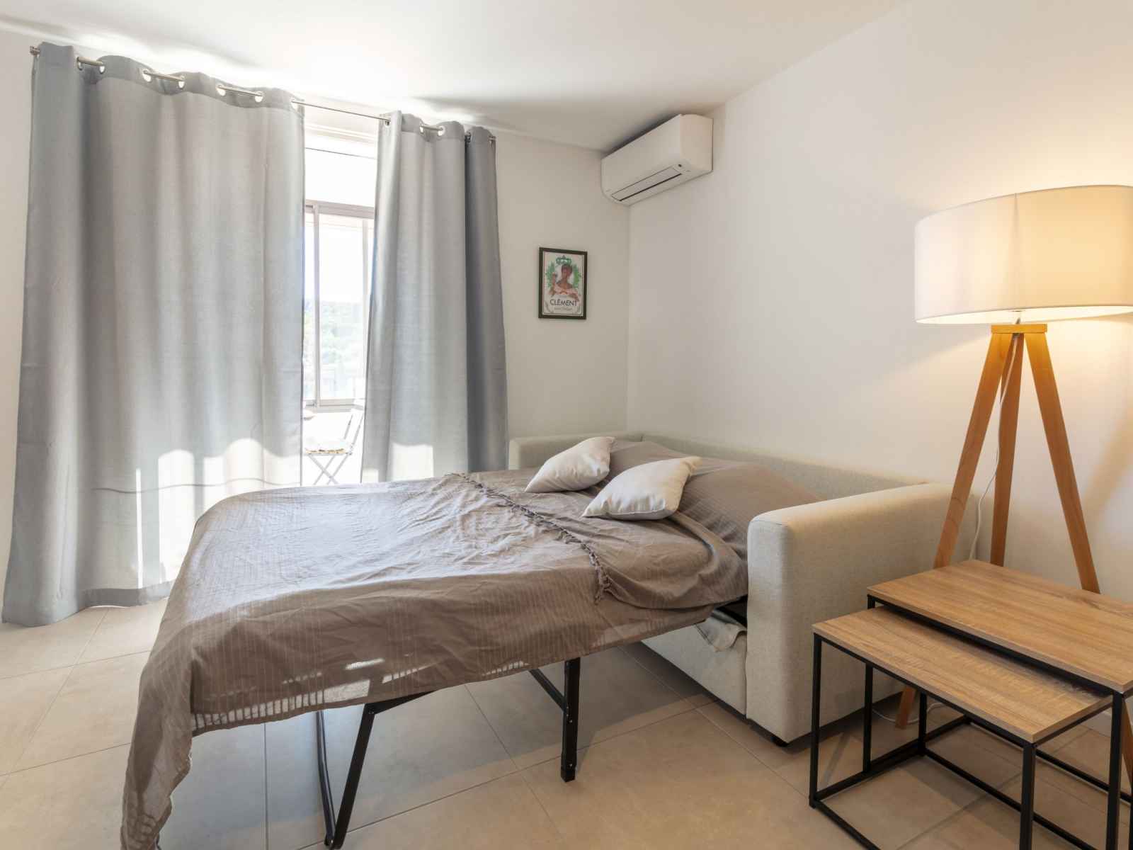 Studio 40 m2 au 2ème étage. aménagement agréable et moderne: séjour/salle à manger avec 1 divan-lit (140 cm, longueur 190 cm), tv (écran plat). sortie sur la loggia. alcôve avec 1 grand-lit (140 cm, longueur 190 cm). cuisine ouverte dans l'entrée (four, lave-vaisselle, 2 plaques à induction, grille-pain, bouilloire électrique,