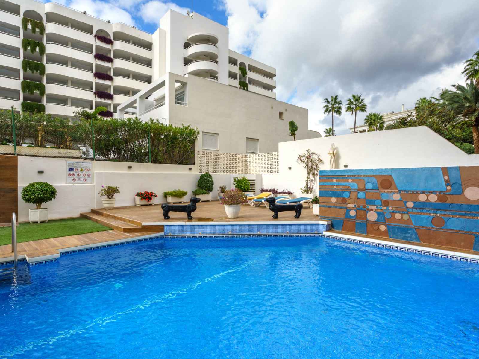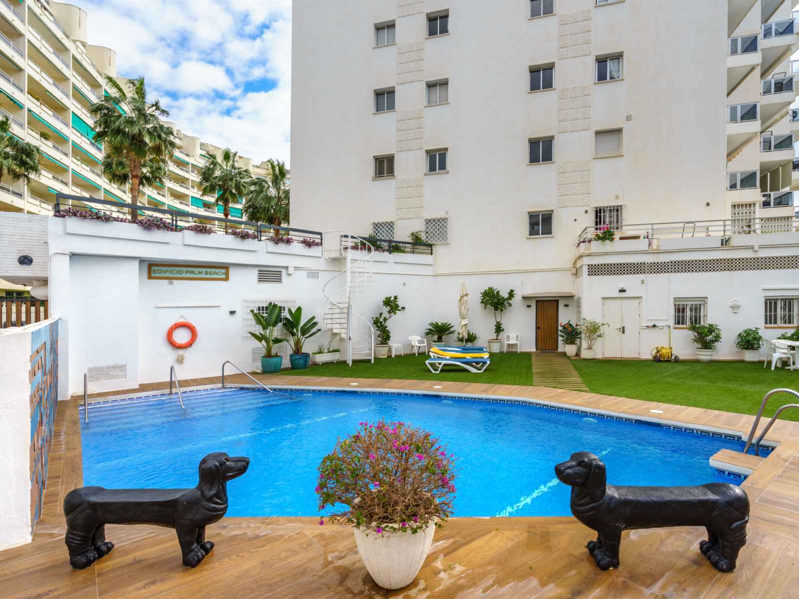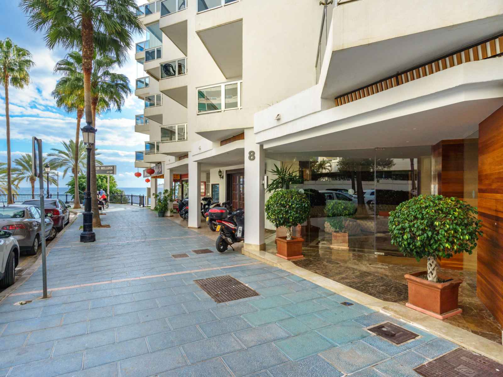 Petite résidence accueillante "palm beach". au centre de marbella, excellente situation: centrale mais tranquille, à 50 m de la mer, à, de la plage, accès direct à la plage. en commun: piscine (disponibilité saisonnière: 01.avr. - 31.oct.). douche/wc dans l'espace piscine. infrastructures de la résidence: ascenseur. parking public couvert