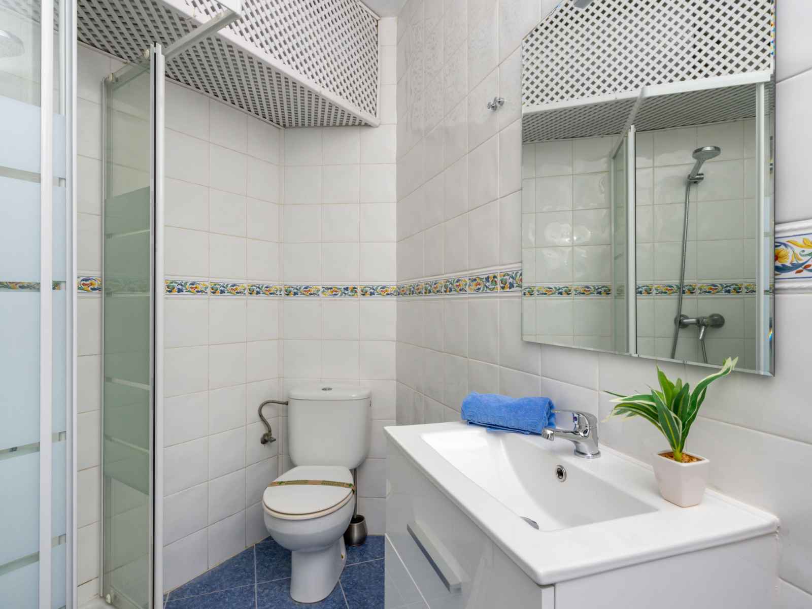 "palm beach" studio 30 m2 au 8ème étage. aménagement agréable et plaisant: séjour avec télévision numérique, air-conditionné et chauffage à air chaud. 1 chambre avec 1 lit (150 cm, longueur 200 cm). coin cuisine (lave-vaisselle, 2 plaques vitrocéramiques, grille-pain, micro-ondes, cafetière électrique). douche/wc. terrasse couverte.