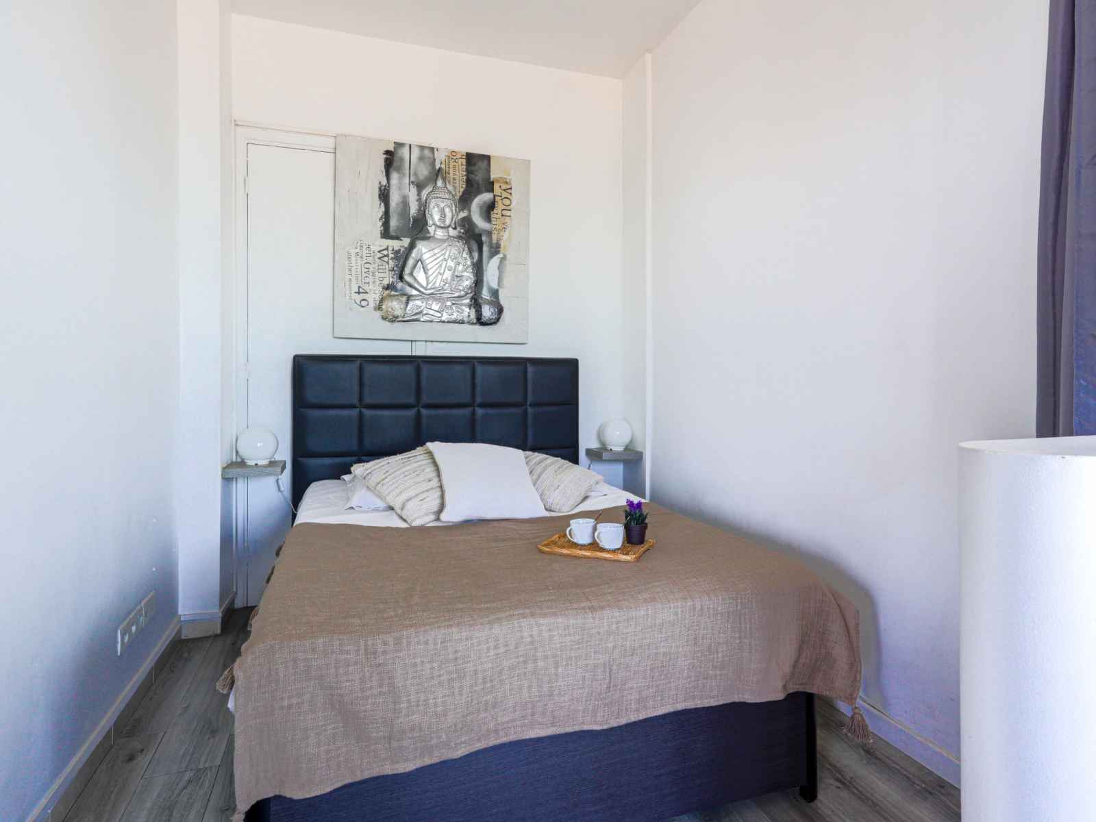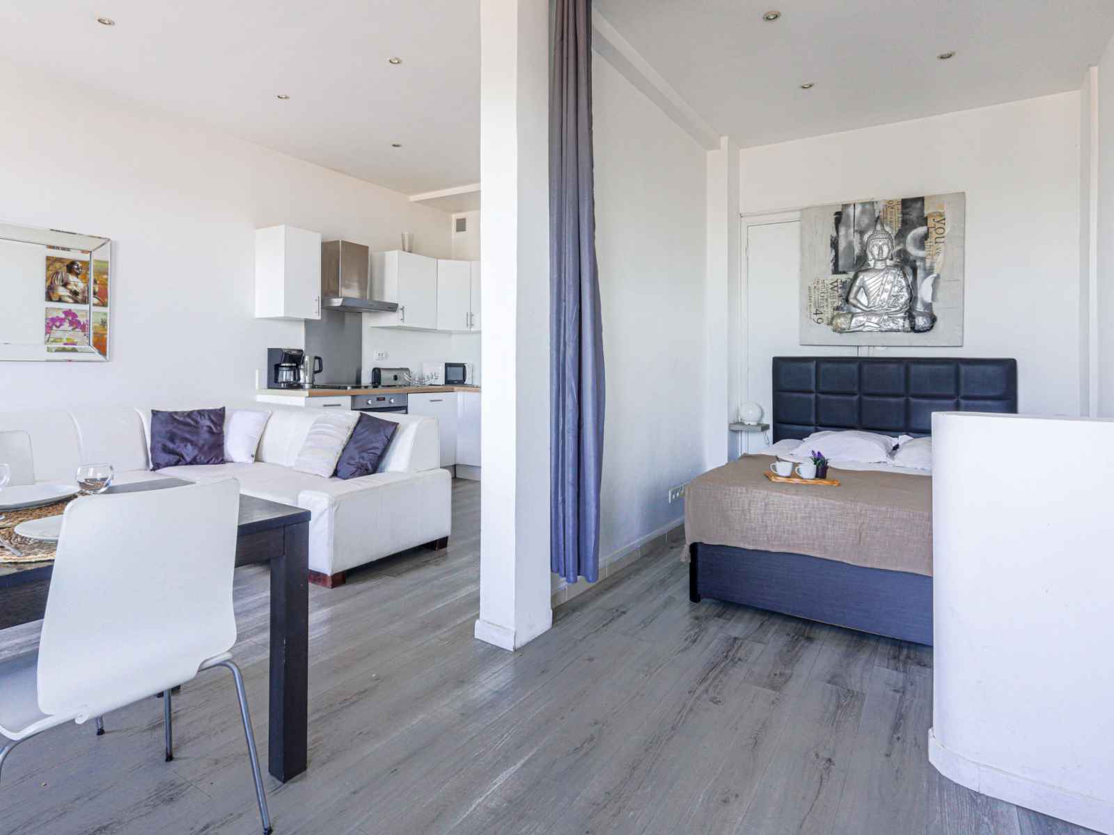 Studio 40 m2 au 2ème étage, situation sud. spacieux et clair, rénové, aménagement agréable et moderne: séjour/salle à manger avec 1 grand-lit (1 x 140 cm, longueur 190 cm), tv et chaînes de tv internationales (écran plat), air-conditionné. sortie sur la terrasse. cuisine ouverte (four, lave-vaisselle, 4 plaques à induction, bouilloire