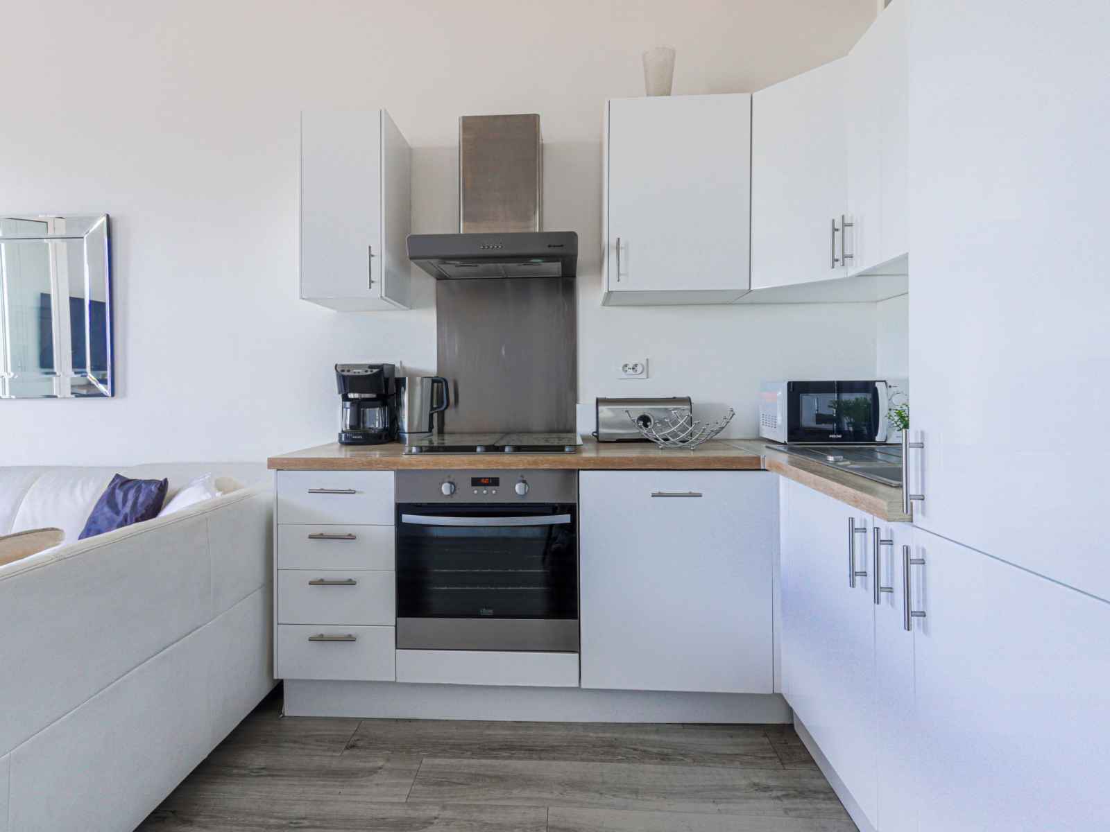 électrique, micro-ondes, congélateur, cafetière électrique). Douche/WC. Chauffage, air-conditionné. Sol en parquet. Terrasse 7 m2, situation sud. Meubles de terrasse. Superbe vue panoramique sur la mer. A disposition: lave-linge, sèche-linge, fer à repasser, sèche-cheveux. Internet (Connexion WIFI, gratuit). Veuillez noter: maximum 1 animal/ chien autorisé. Détecteur de fumée. 06088009340HT