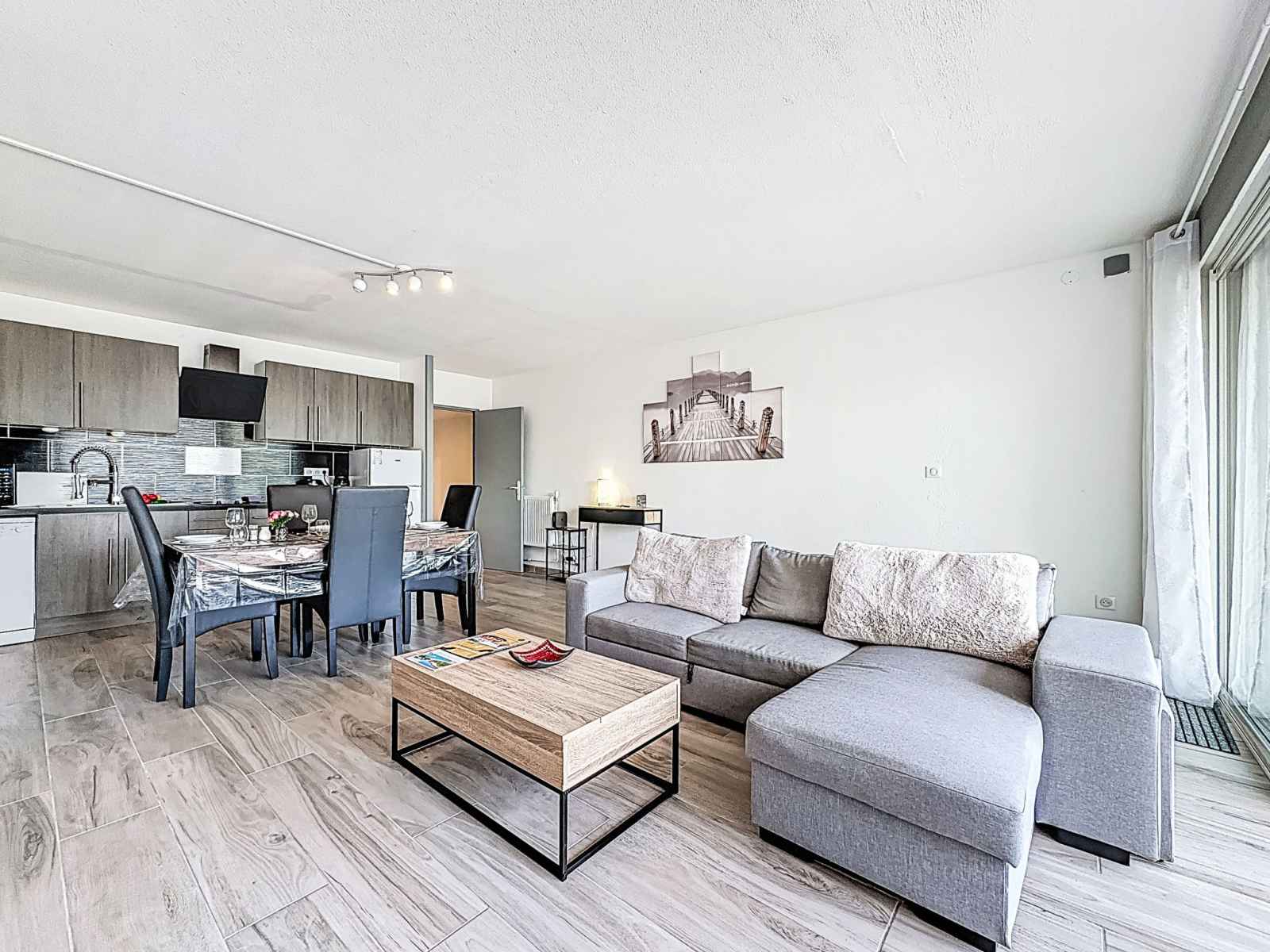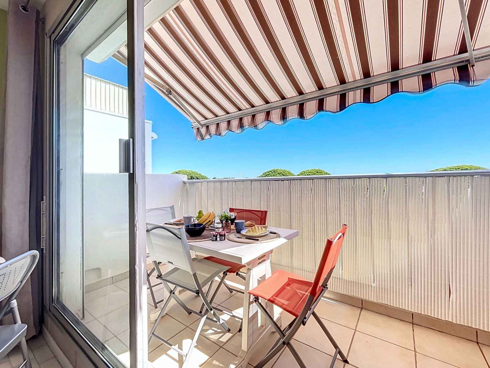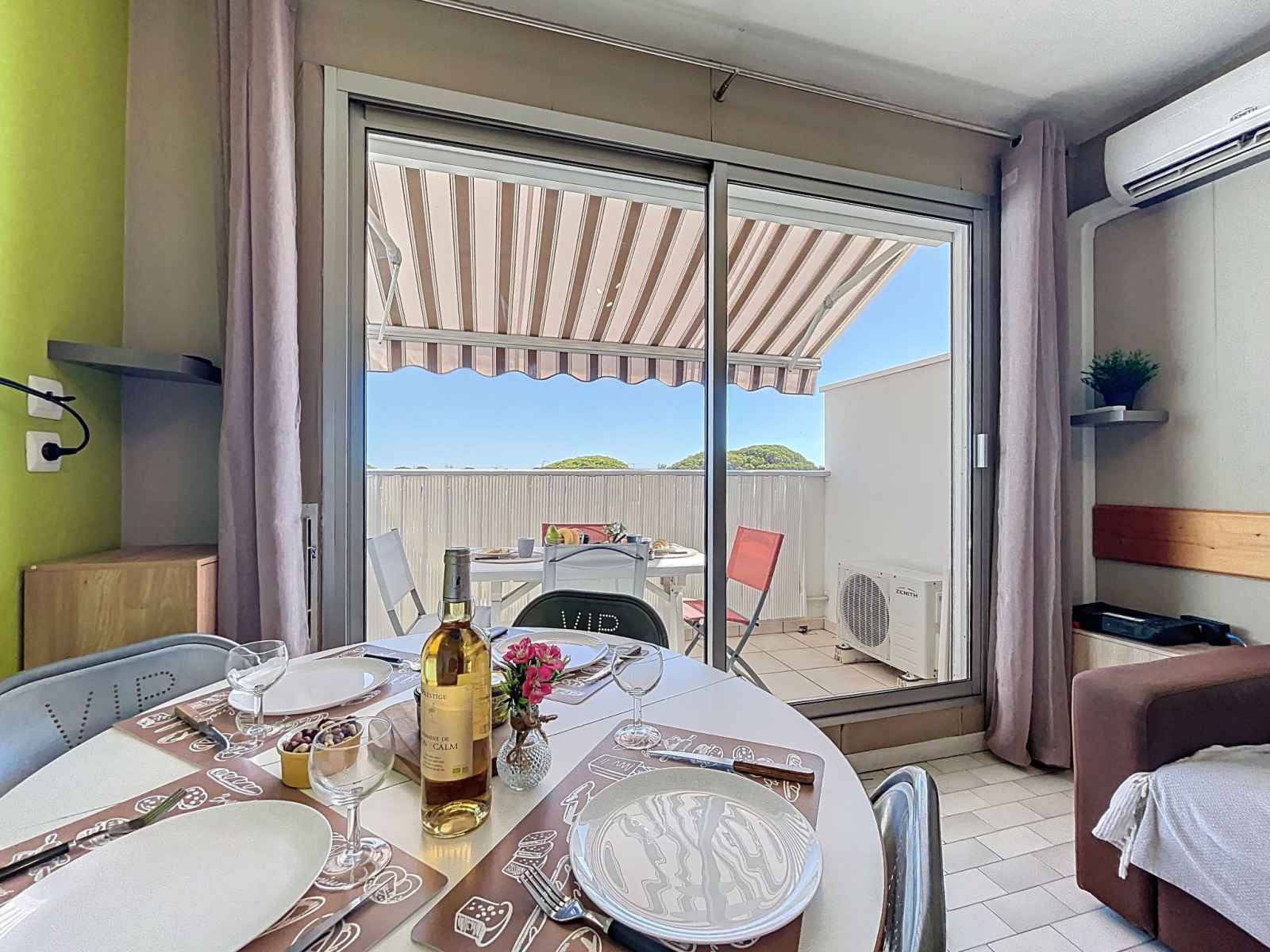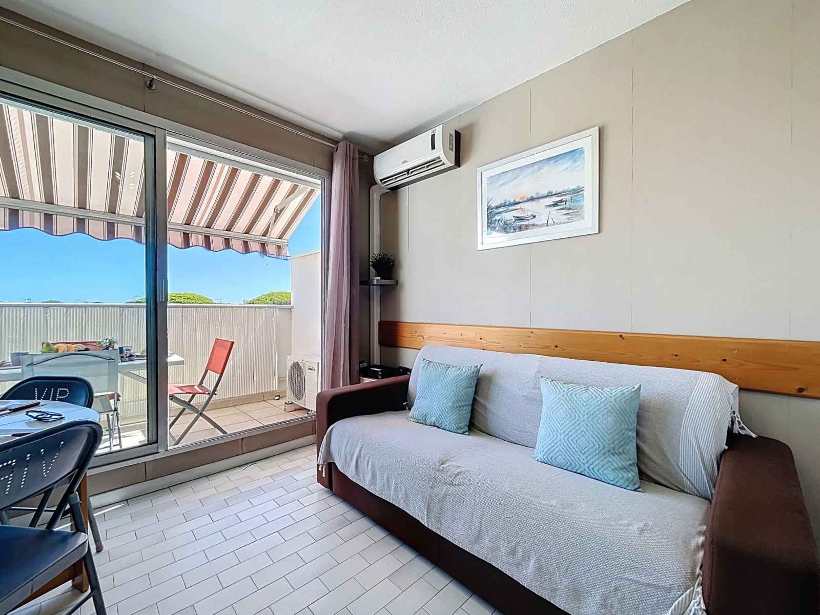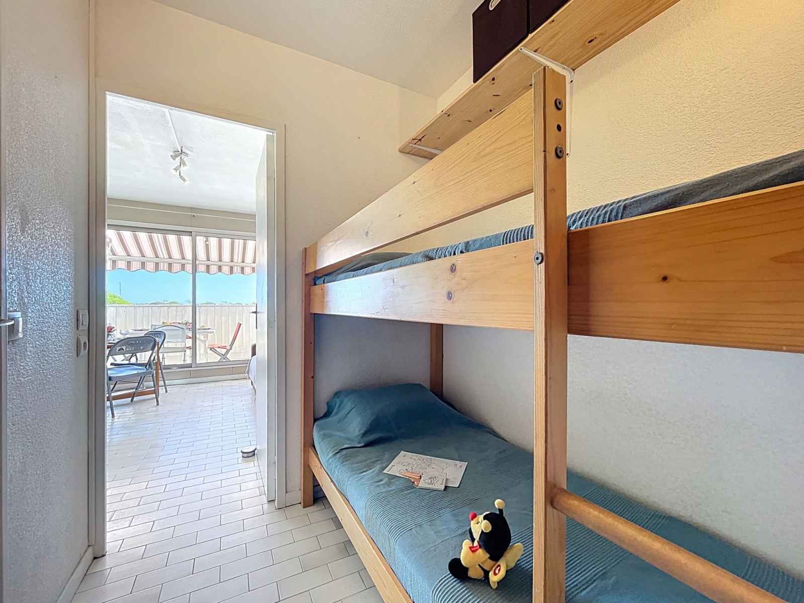 "le santa maria" studio 20 m2 au 2ème étage. logement idéal pour 2 adultes + 2 enfants. séjour/chambre à coucher avec 1 divan-lit double (140 cm, longueur 190 cm), tv (écran plat). sortie sur le balcon. cabine avec 1 x 2 lits superposés (90 cm, longueur 190 cm). coin cuisine (lave-vaisselle, 2 plaques vitrocéramiques, grille-pain,