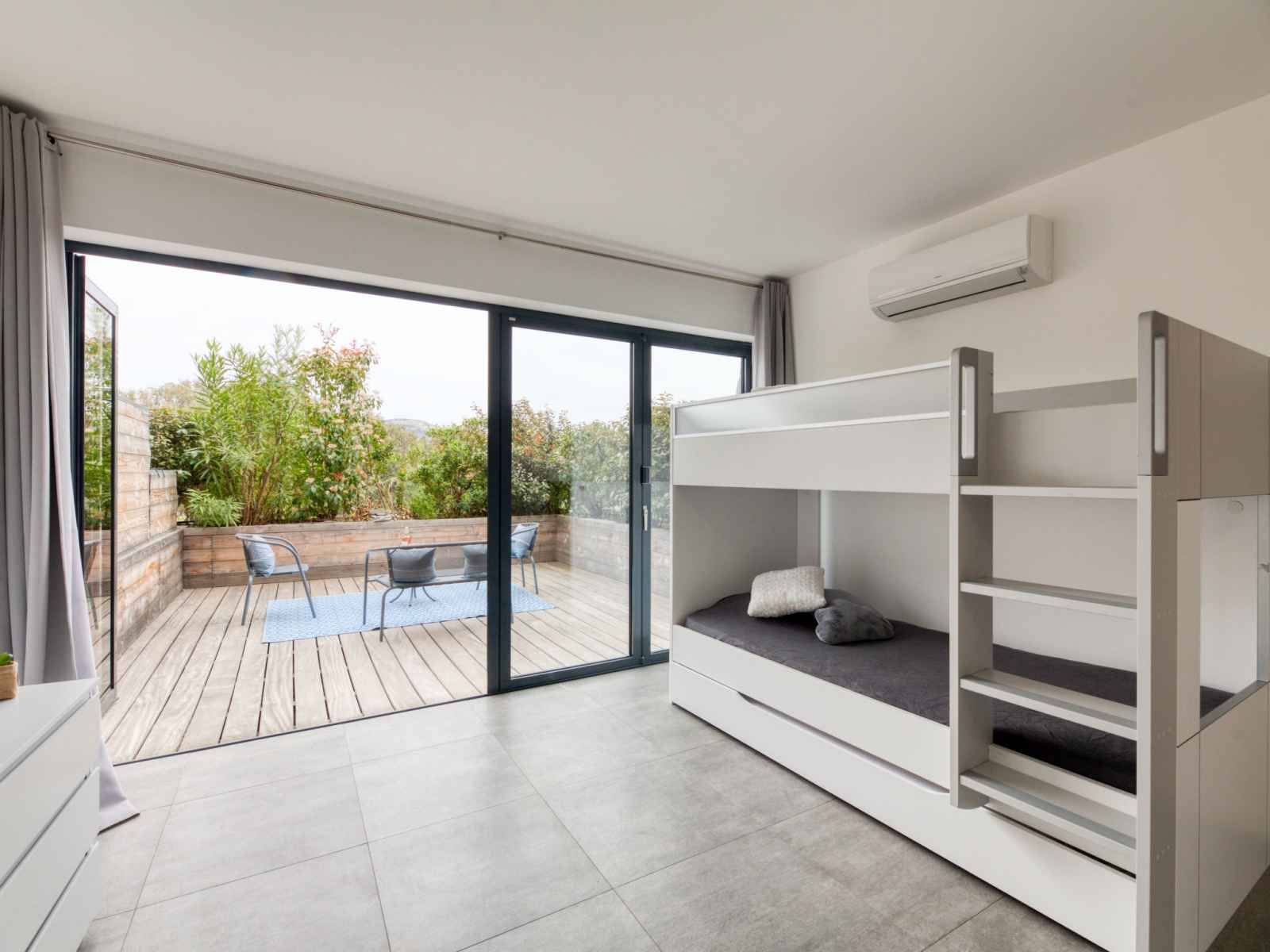 "bastion", apt 2 pièces 50 m2, au rez-de-chaussée. aménagement confortable: entrée avec 1 grand-lit (160 cm, longueur 200 cm). pièce en enfilade avec 1 x 2 lits superposés (90 cm, longueur 190 cm). sortie sur la terrasse. séjour/salle à manger ouvert avec tv (écran plat). coin cuisine (2 plaques de cuisson, four, lave-vaisselle,