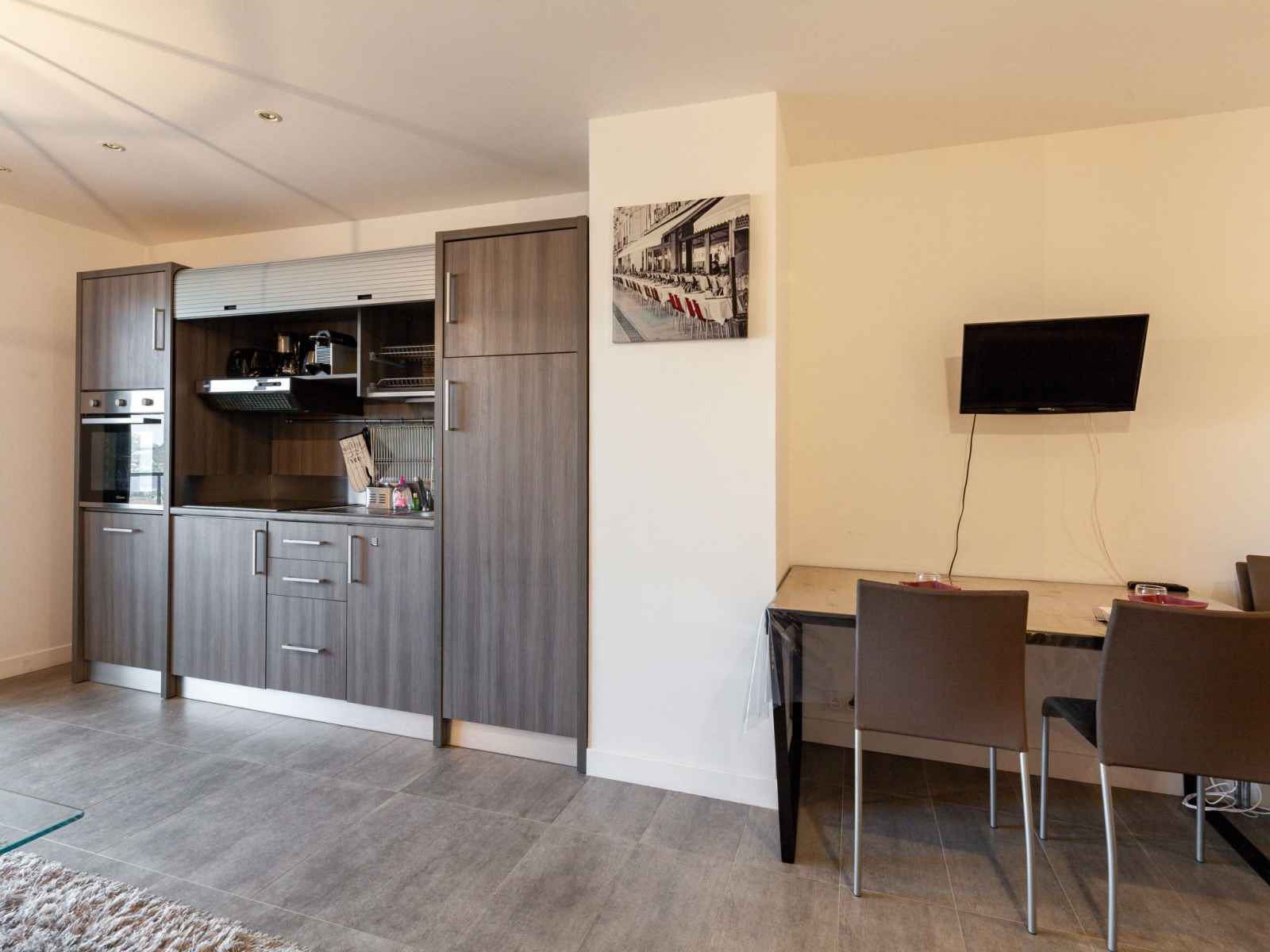 "château" studio 34 m2 au 2ème étage. aménagement confortable et plaisant: séjour/salle à manger avec 1 divan-lit double (140 cm, longueur 190 cm), tv (satellite). cuisine ouverte (3 plaques de cuisson, four, lave-vaisselle, grille-pain, bouilloire électrique, micro-ondes, congélateur, cafetière électrique). sortie sur la terrasse.