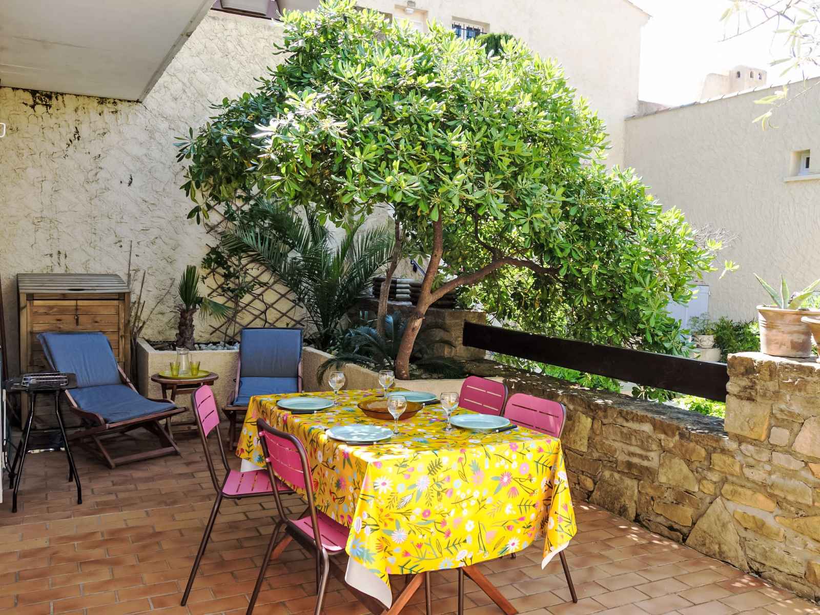 cafetière électrique, Capsules pour machine à café (Senséo) (NON INCLUSES)). Bain/WC. Chauffage électrique. Grande terrasse 30 m2 partiellement couverte, situation nord-ouest. Meubles de terrasse, barbecue électrique. A disposition: Internet (Connexion WIFI, en sus). Veuillez noter: TV seulement FR. Détecteur de fumée. 83112 000169 W7