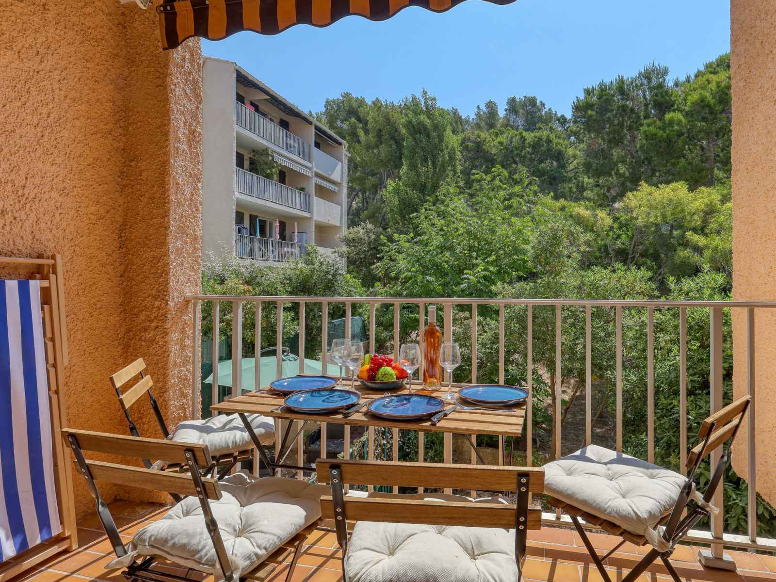 Résidence "les aigues marines", de 3 étages. dans la localité, à 2 km du centre de saint cyr sur mer, situation surélevée dans un quartier résidentiel, à 600 m de la mer, à 600 m de la plage, dans une rue, dans la verdure. place de parking (nombre de places limité), parking public en sus. magasin d'alimentation 200 m, restaurant 500 m,