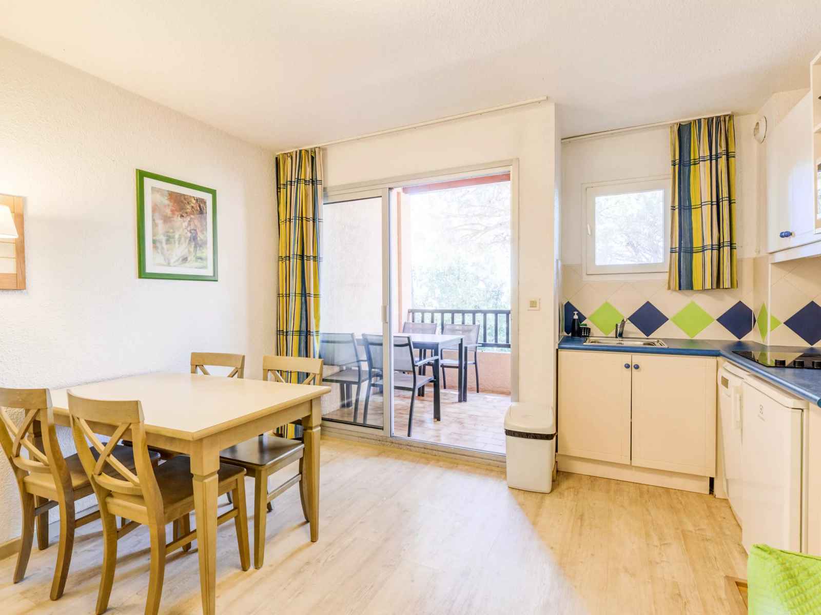 Votre location de vacances comporte : 1 séjour, 1 coin cabine, 1 cuisine, 1 salle de bain, 1 wc séparé et 1 balcon.
