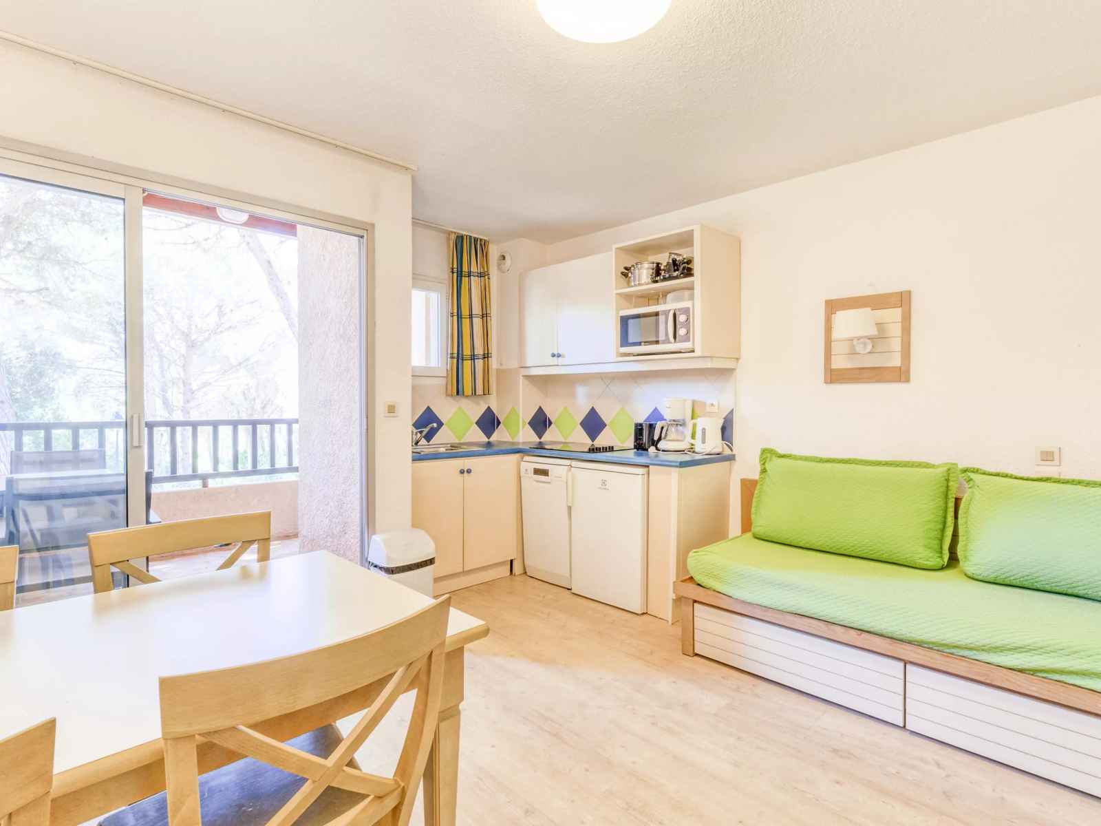 • A noter : Balcon, Chauffage, Vue Forêt, Kit d'entretien Inclus - contenu peut varier selon les résidences : éponge, lavette, flacon de produit multi-usages, flacon de produit liquide vaisselle main, tablette lave-vaisselle et torchon., Parking Découvert gratuit - sous réserve de disponibilités, dans la limite d'une voiture/logement., Piscine commune Inclus. Extérieure, dans la résidence, ouverte du 15 avril au 15 octobre 2025 (chauffée à partir du 15/05)