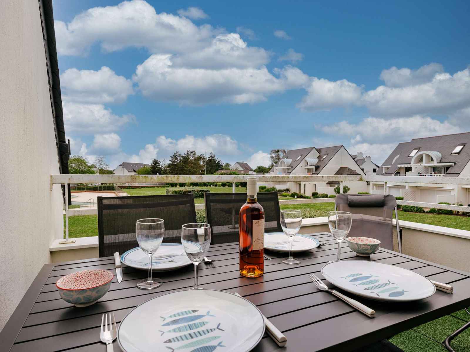 • Equipements : Animaux refusés, Bouilloire, Cafetière, Chauffage, Etendoir, Fer à repasser, Four, Four micro-ondes, Grille pain, Lave-linge, Lave-vaisselle, Mobilier de jardin, Parking, Piscine collective, Réfrigérateur, Sèche-cheveux, Télévision, Terrasse ou balcon, WC séparés, Wifi