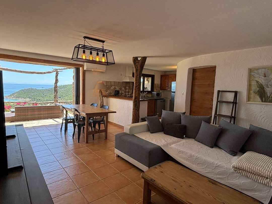 - Séjour/cuisine (Entrée par la terrasse face à la mer : grande baie vitrée avec vue panoramique sur la mer