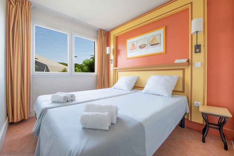 avec lits simples qui peuvent se rapprocher pour former un lit double.