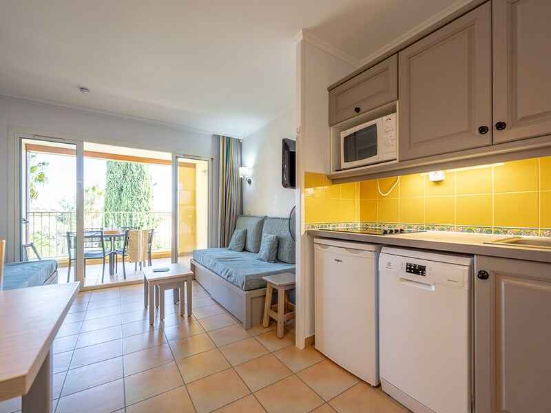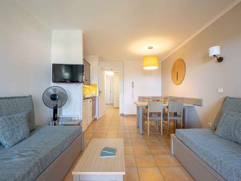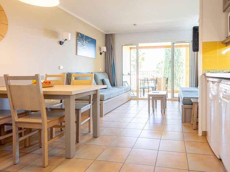 les appartements spacieux avec balcon, offrent une vue sur le jardin arboré. s'y ajoutent, la piscine extérieure non chauffée avec pataugeoire, ouverte à partir du mois d'avril et son snack,