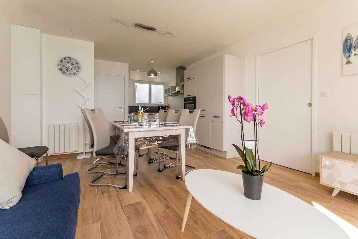 Ensemble de 4 appartements situé face à la plage. loggia sud/sud ouest de 5 m² face à la mer + cour commune aux 4 appartements avec barbecue.