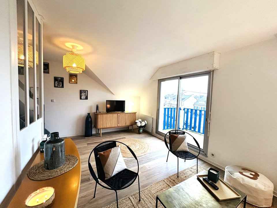 - une kitchenette équipée ouverte sur séjour-salon donnant sur balcon vue mer
