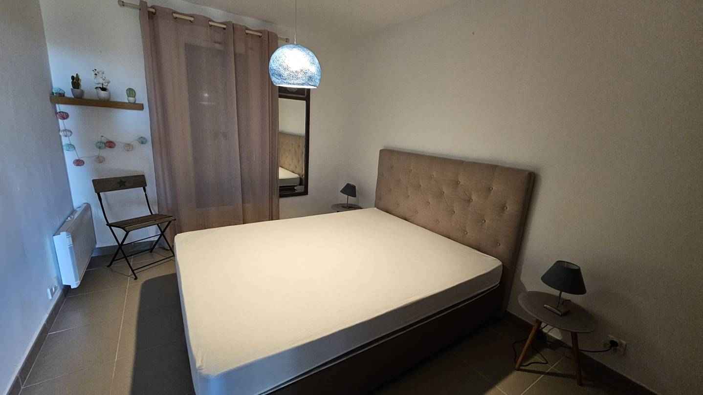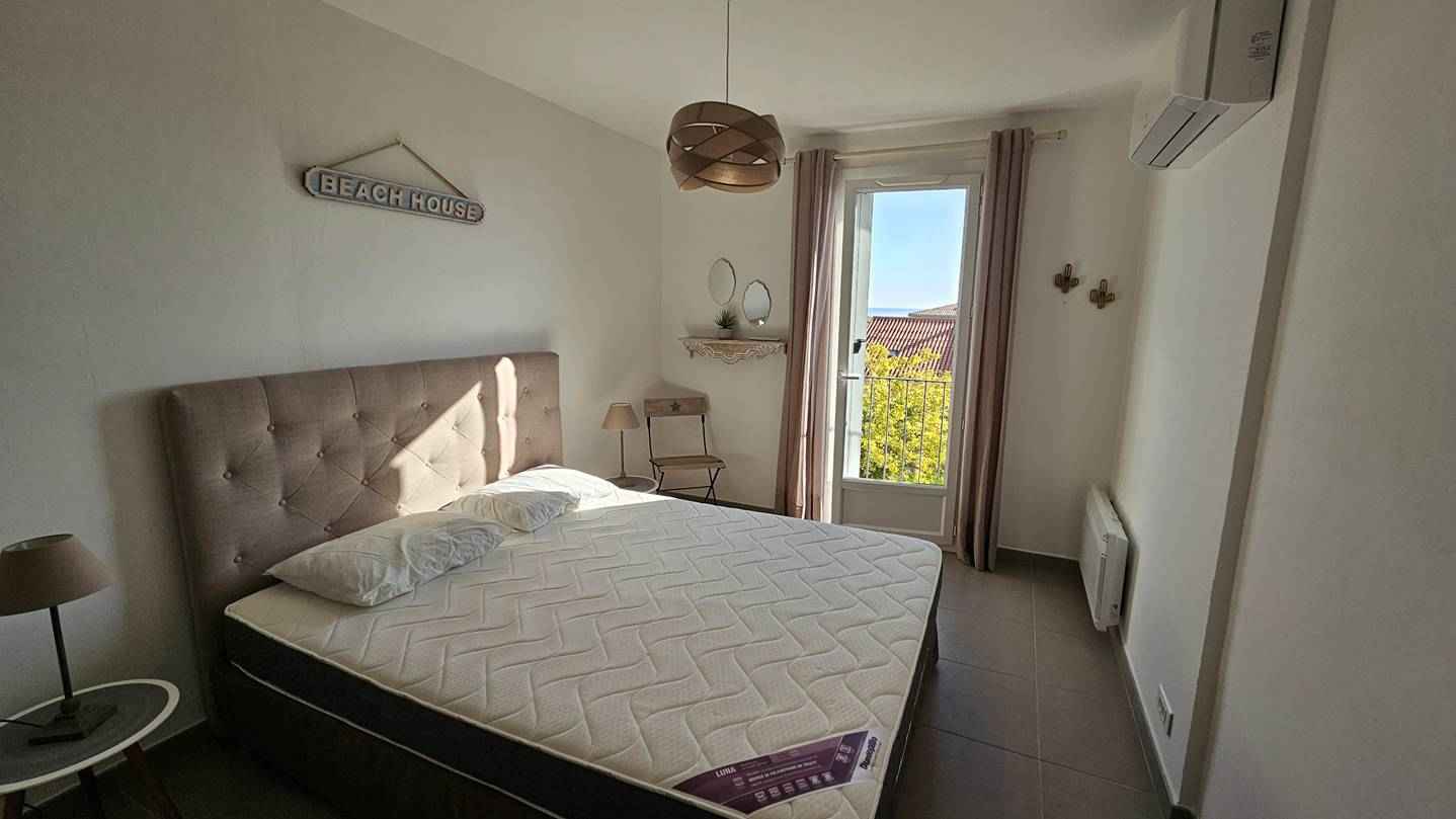 - Chambre 1 : (clim) : balcon : 1 lit en 160, placard de rangement.