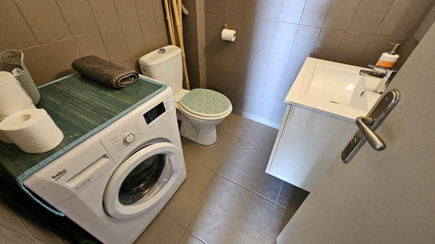 - Wc invité : wc, lavabo, lave-linge