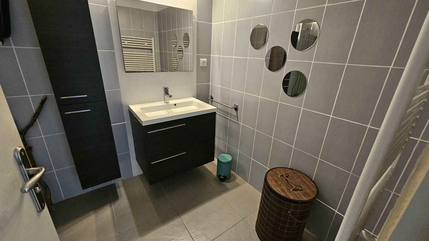 - Salle de bains (Salle de bain : baignoire, vasque, sèche-serviette.