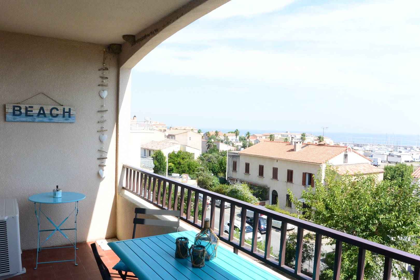 - Terrasse vue mer : table avec 3 chaises.